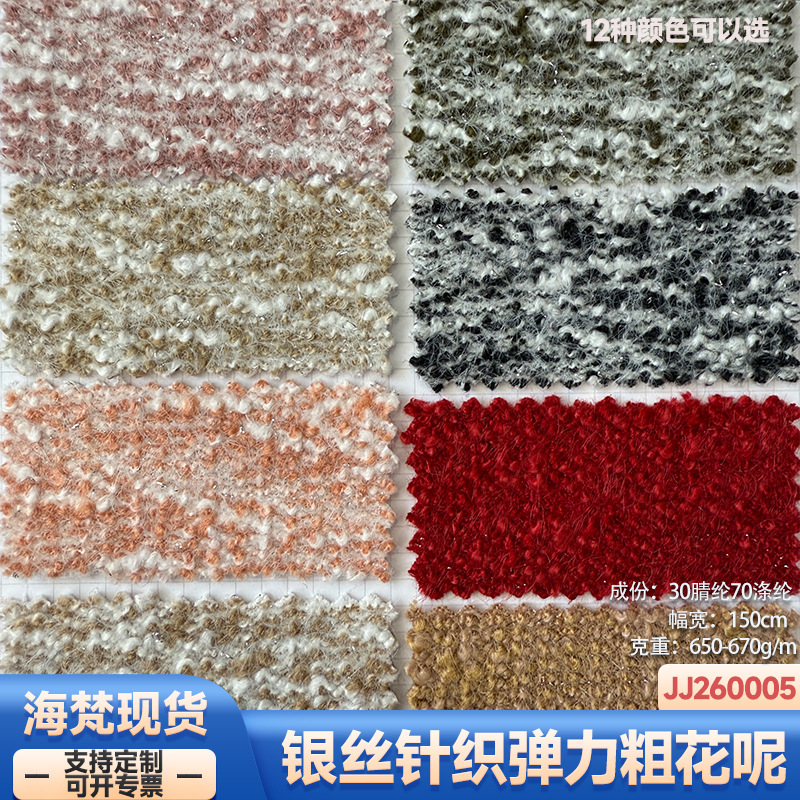 现货|650克银丝针织弹力单面粗花呢小香风服装外套鞋帽箱包裤面料