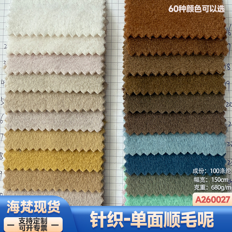 现货|680克针织单面顺毛呢涤纶服装大衣外套鞋帽箱包裤裙呢绒面料
