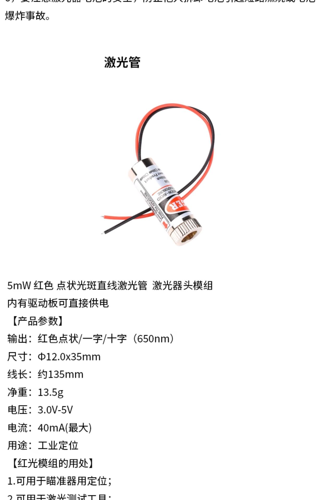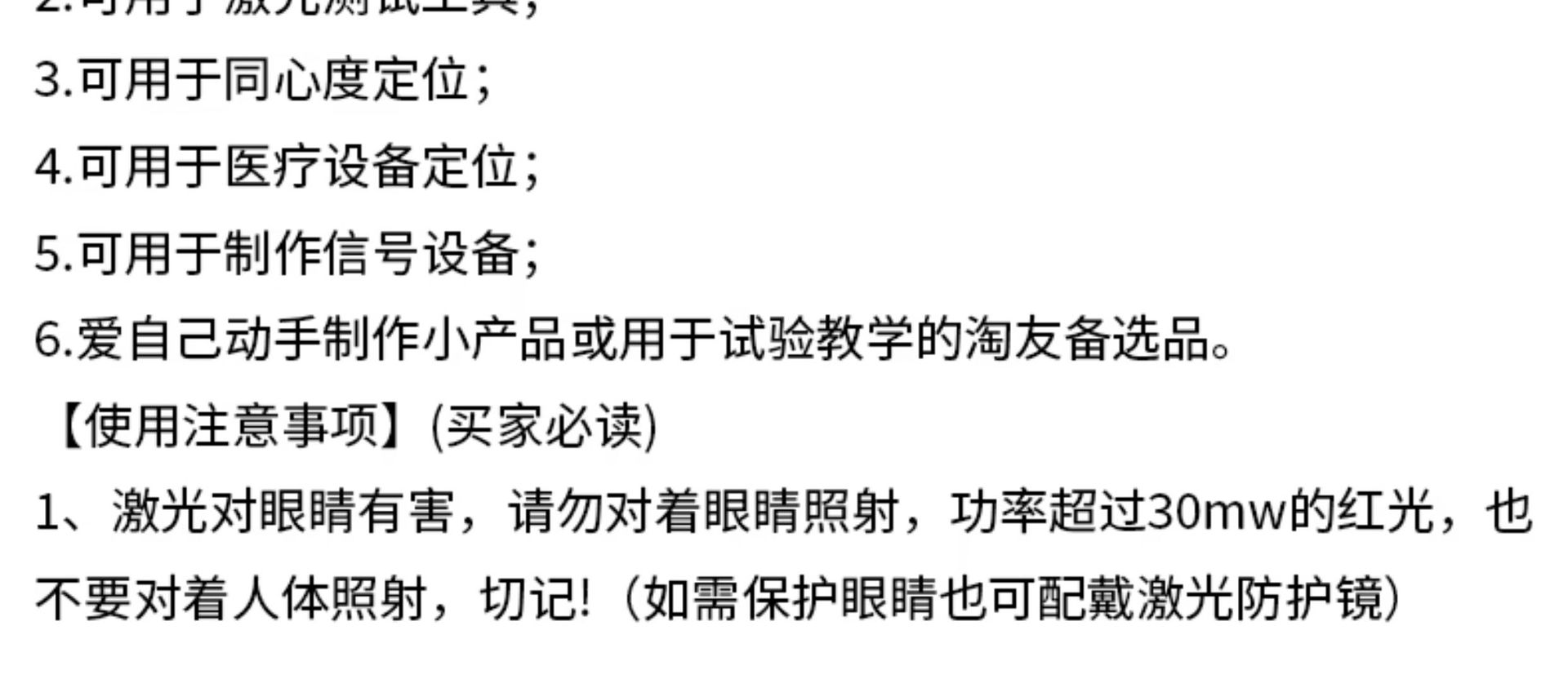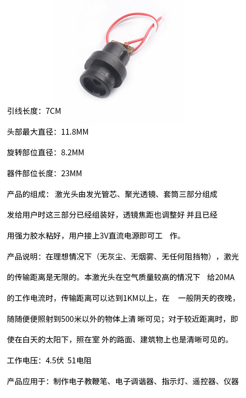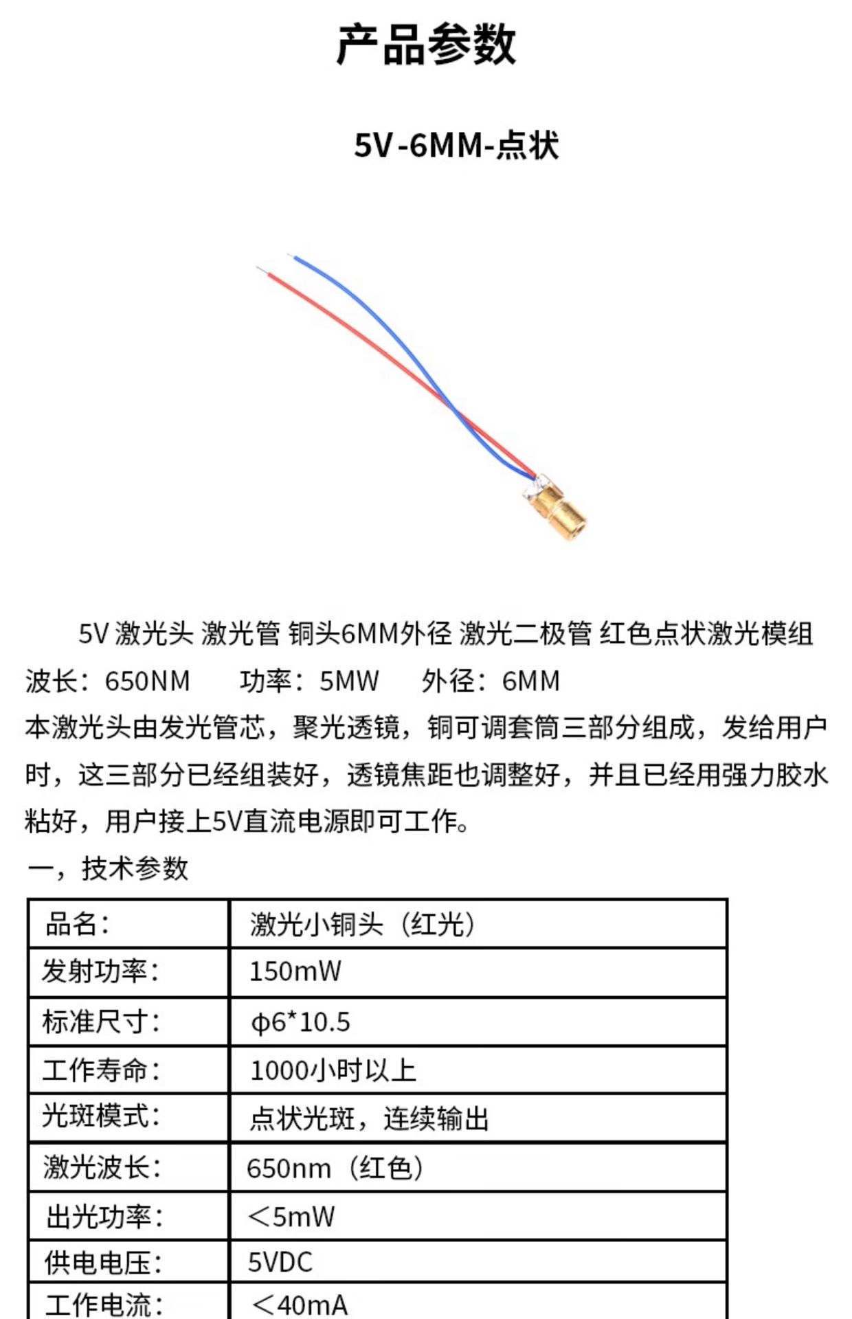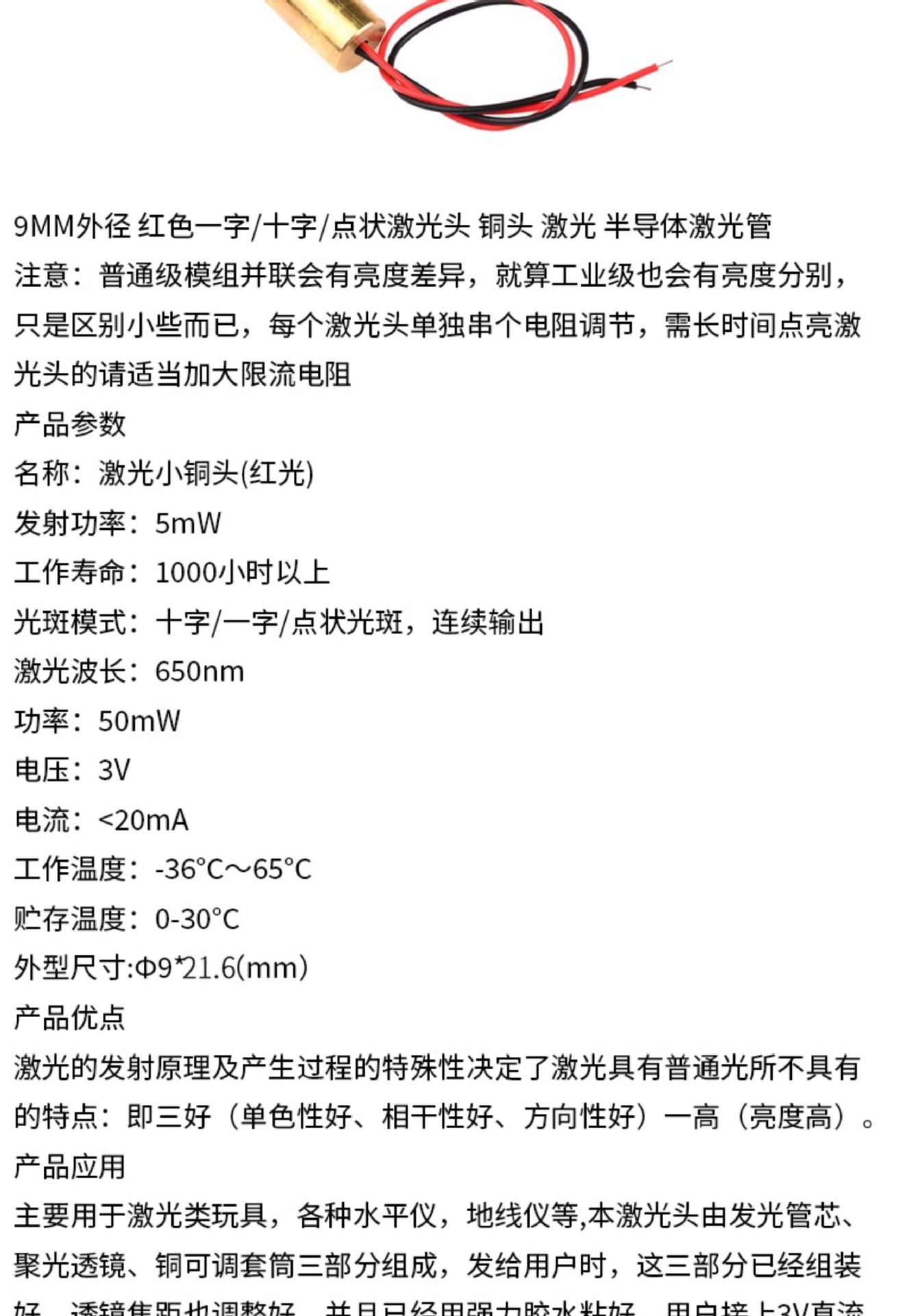 规格 3V6MM点状,5V-6MM-点状,9MM-点状,9MM-十字,9MM-一字,12MM-点状,12MM-十字,12MM-一字,6mm激光管点状(外调焦工业级)