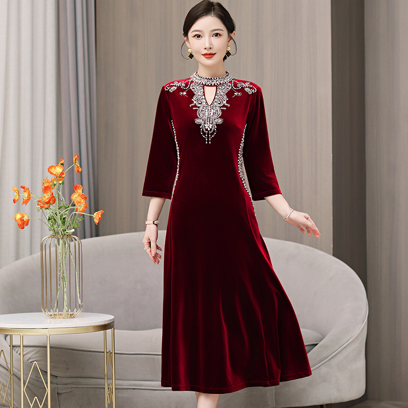 yqwl5639新国风婚宴装礼服裙2025秋冬新款喜婆婆敬酒丝绒连衣裙女