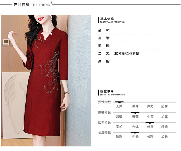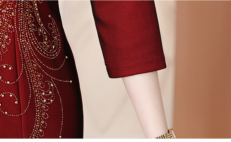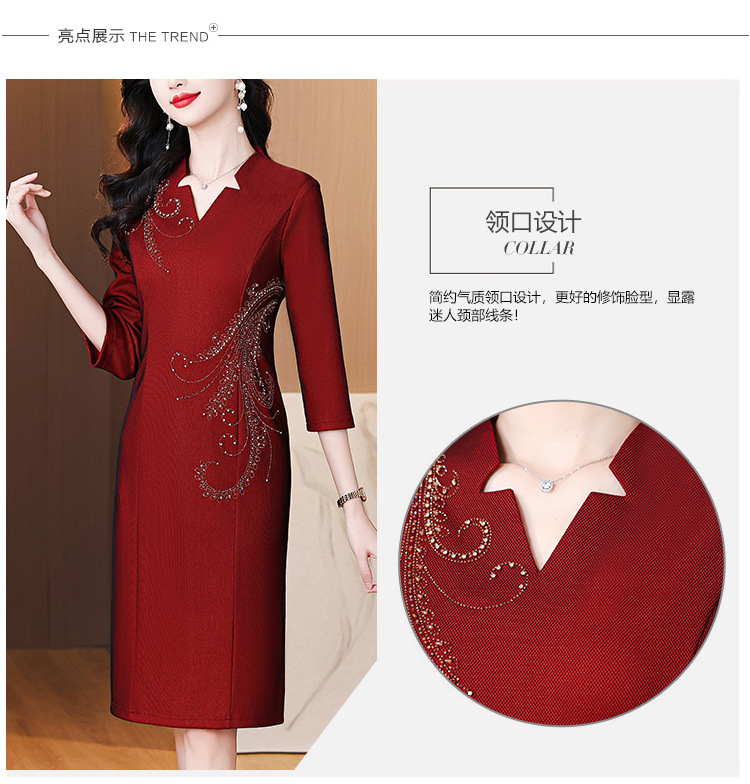 blx9729优雅烫钻假两件连衣裙女2025秋冬新款喜婆婆婚宴装礼服裙