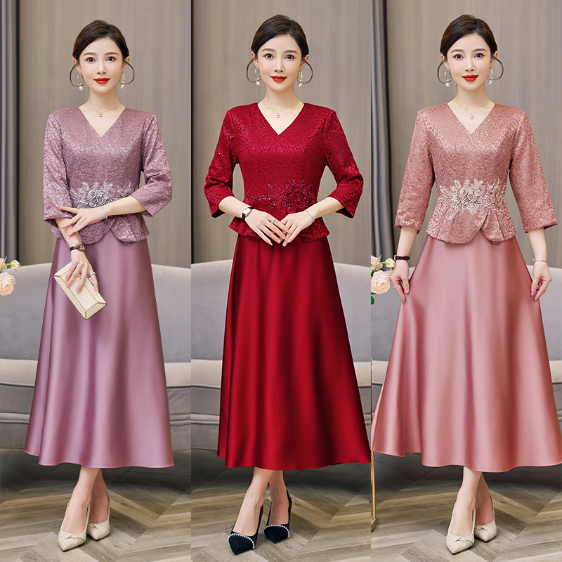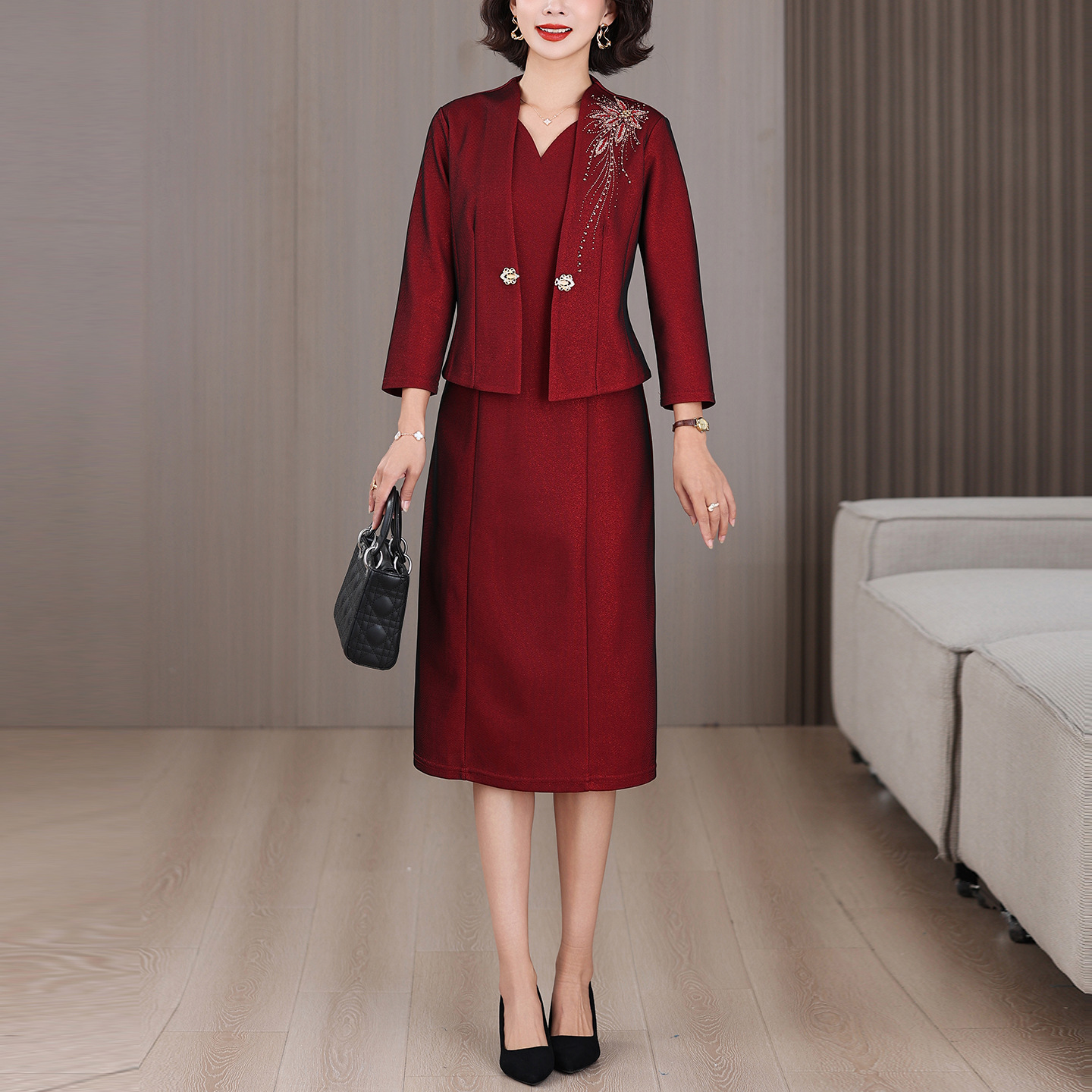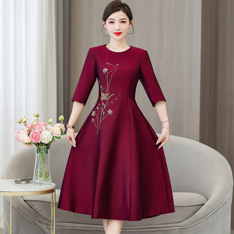 yqwl6628喜婆婆婚宴装红色礼服裙2025秋季妈妈时尚优雅气质连衣裙