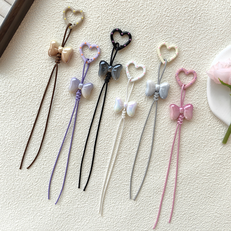 跨境Y2K甜酷辣妹风蝴蝶结钥匙扣手机耳机包包挂件白色爱心蝴蝶结