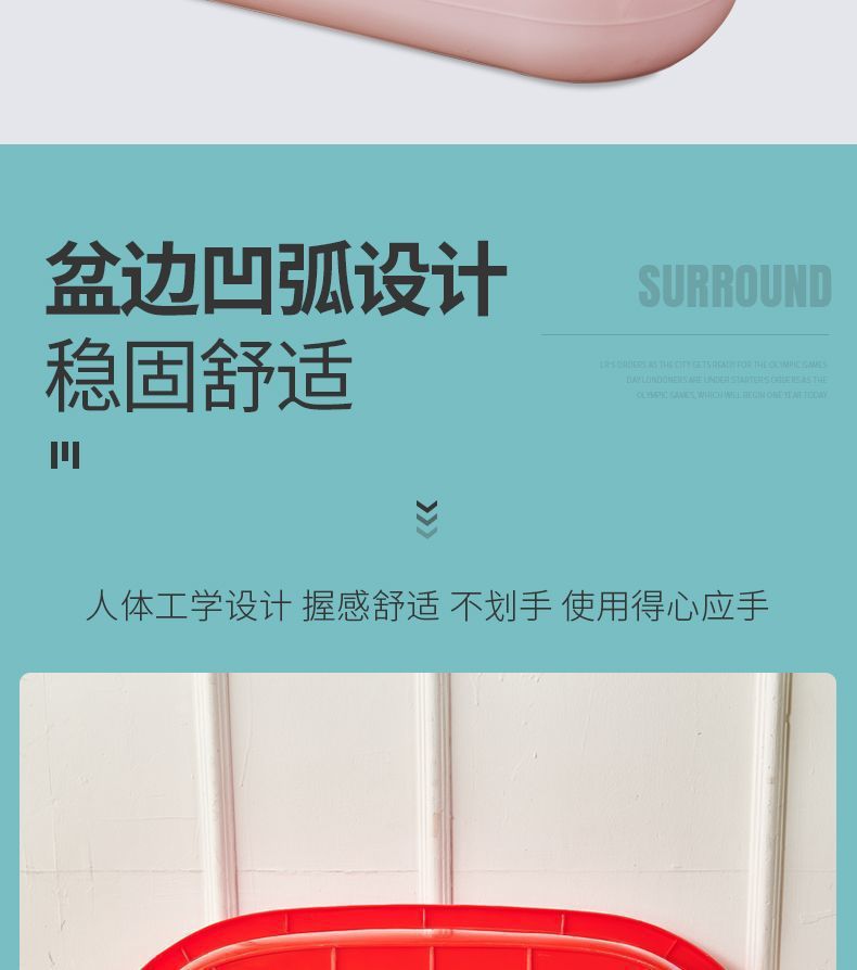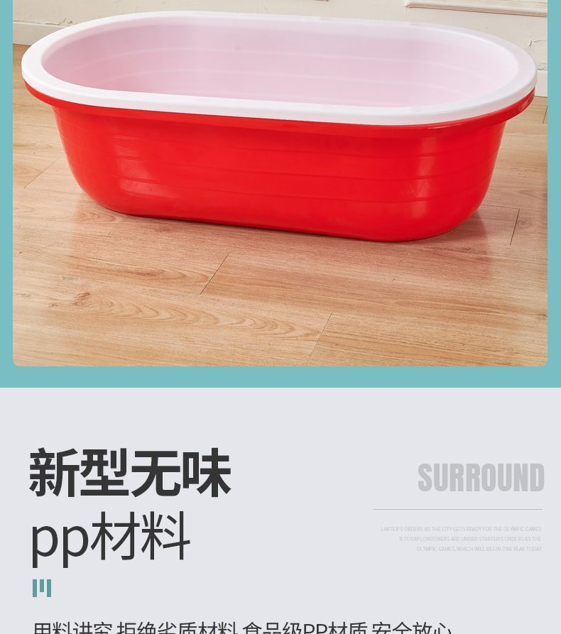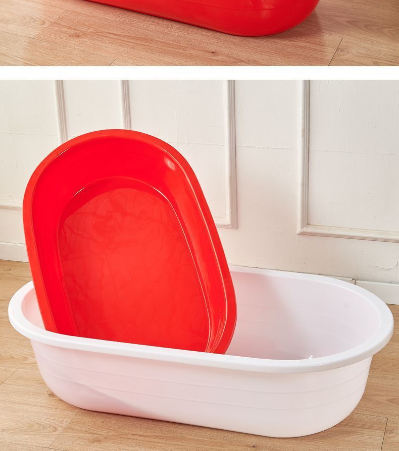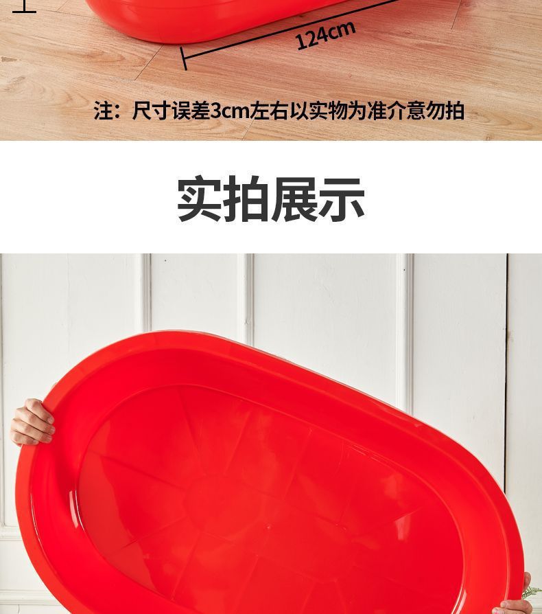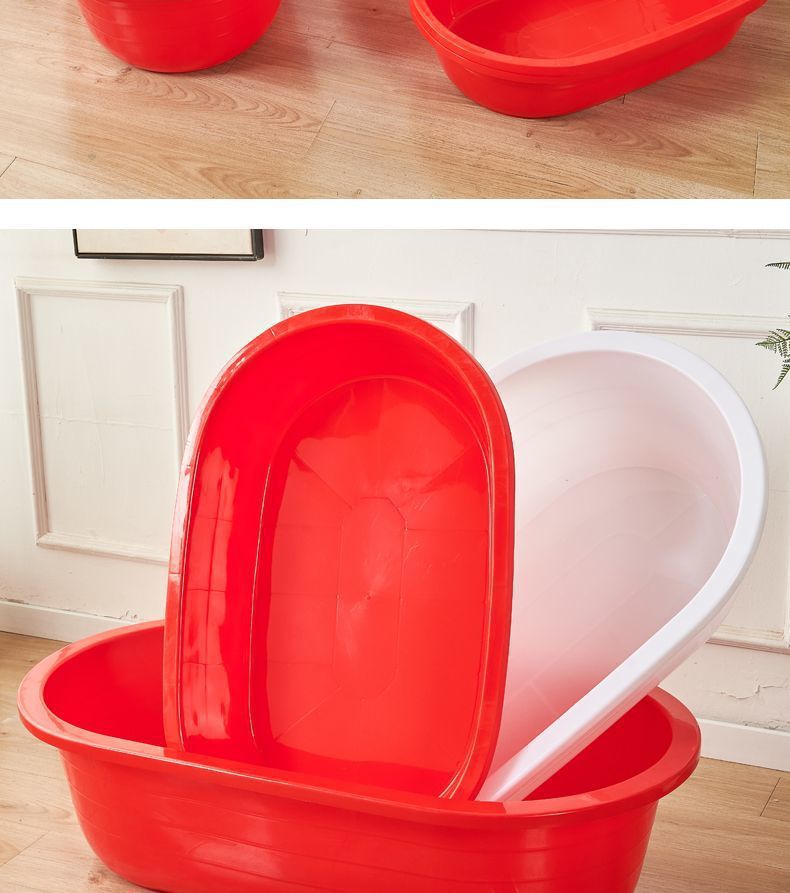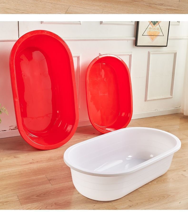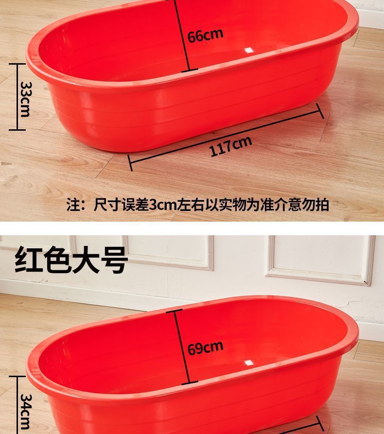塑料长盆大号加厚长方形洗澡盆红色圆形盆成人儿童家用沐浴泡澡盆