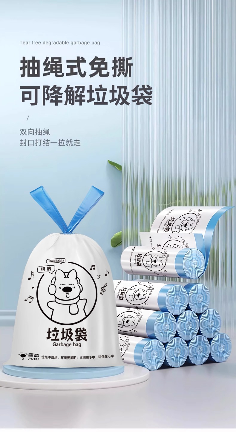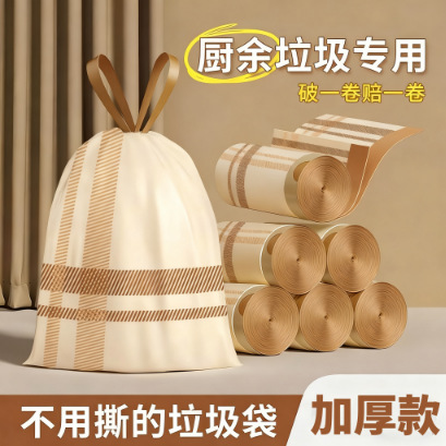 可降解抽绳垃圾袋家用加厚手提式厨房环保免撕自动收口大号批发