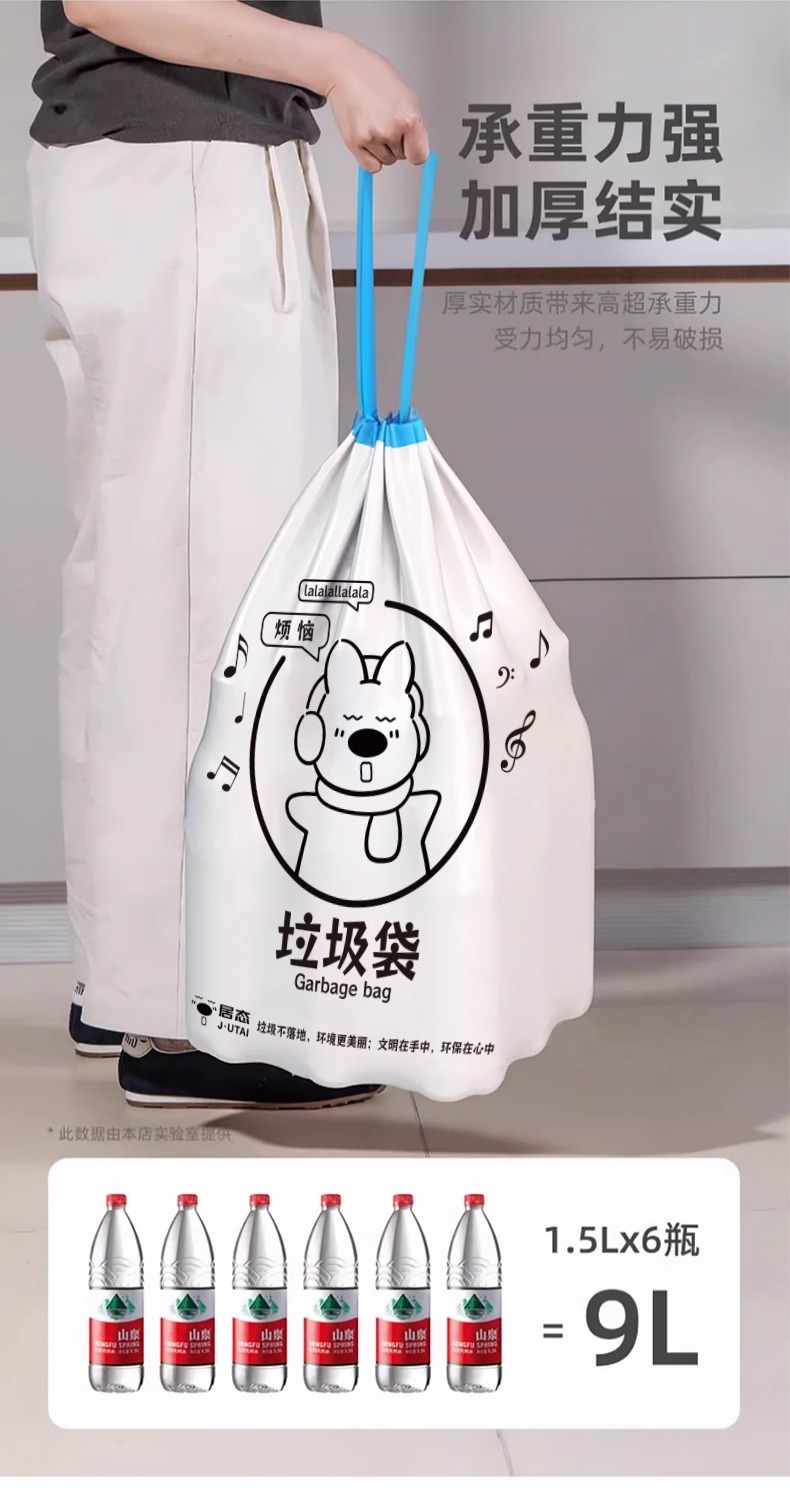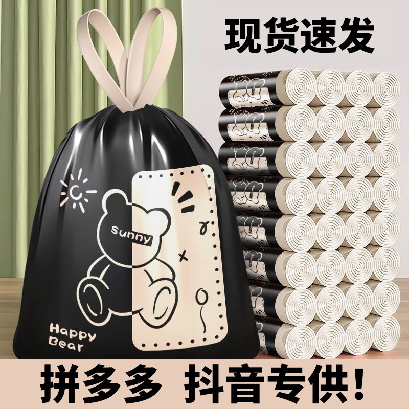 抖音加厚抽绳式奶油熊垃圾袋家用手提厨房学生宿舍塑料袋提拉收口