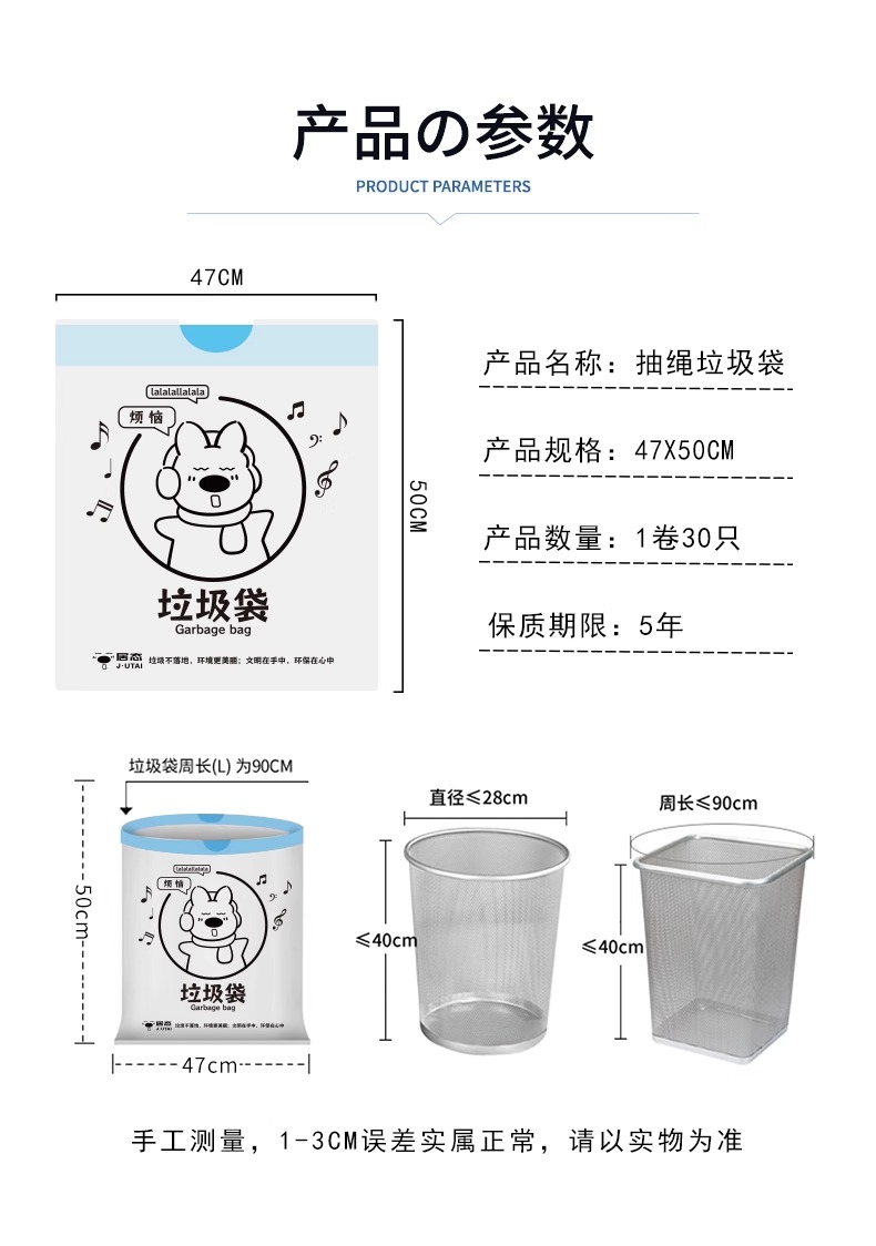 颜色 可降解免撕抽绳【大号47*50cm】(30只/1卷)超厚3.5丝