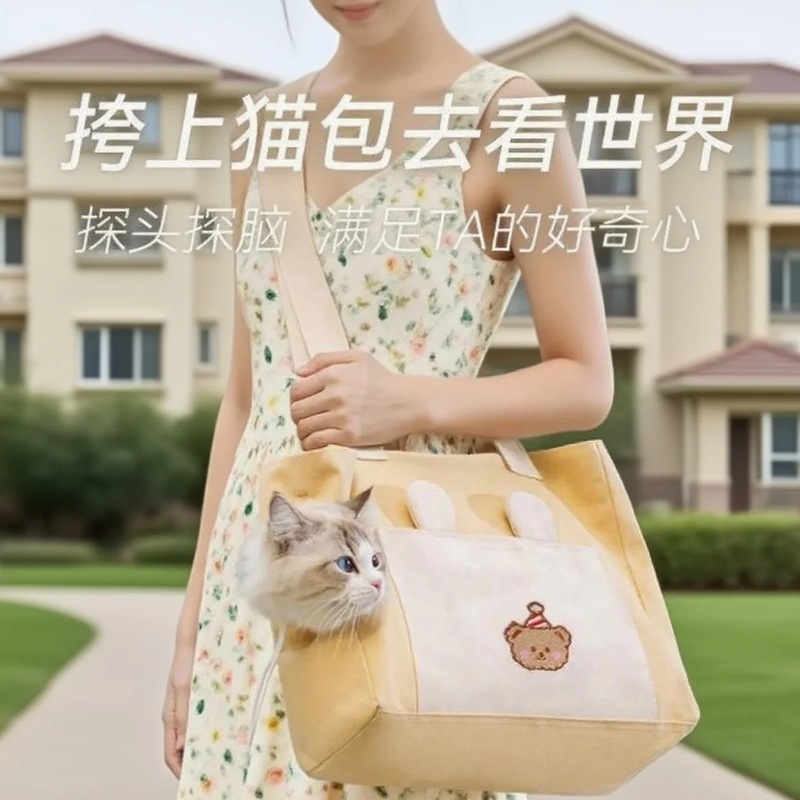 高颜值外出便携猫包轻便款大容量可爱露头斜挎包幼猫幼犬小手提袋