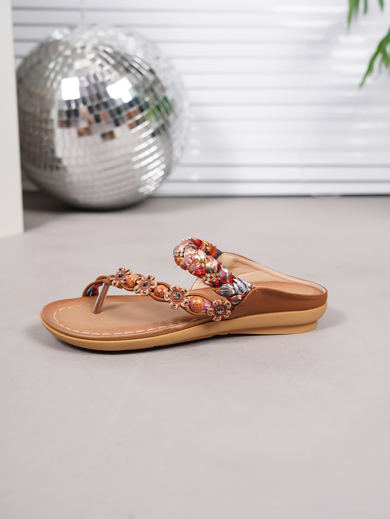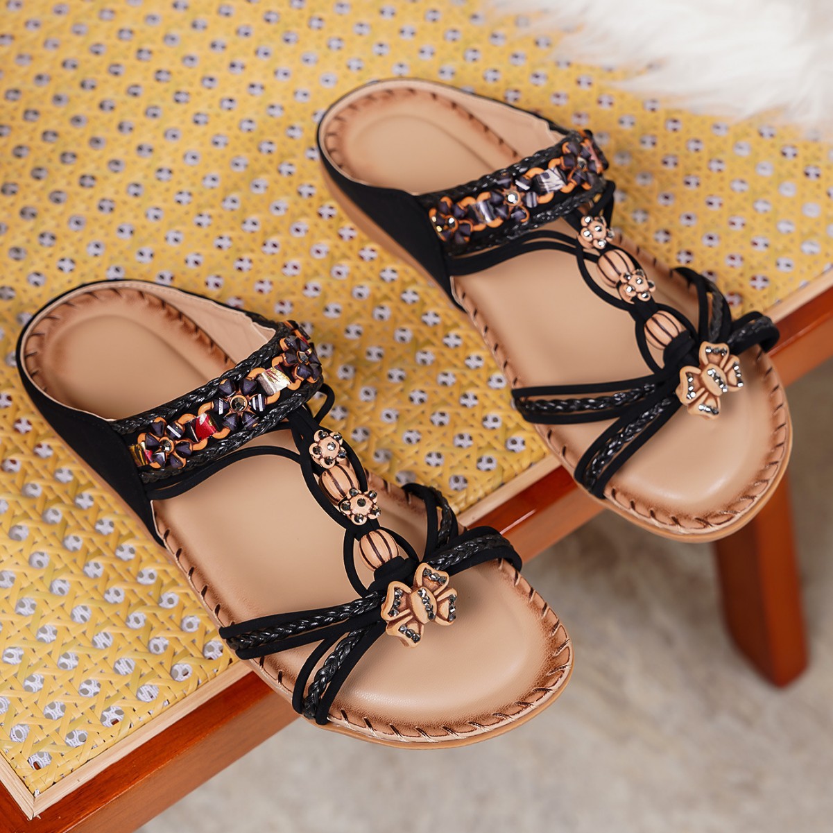 ボヘミアン民族風レディースシューズ、夏のファッションビーチサンダル、ビーズ付きビーチサンダル、クロスボーダー専用