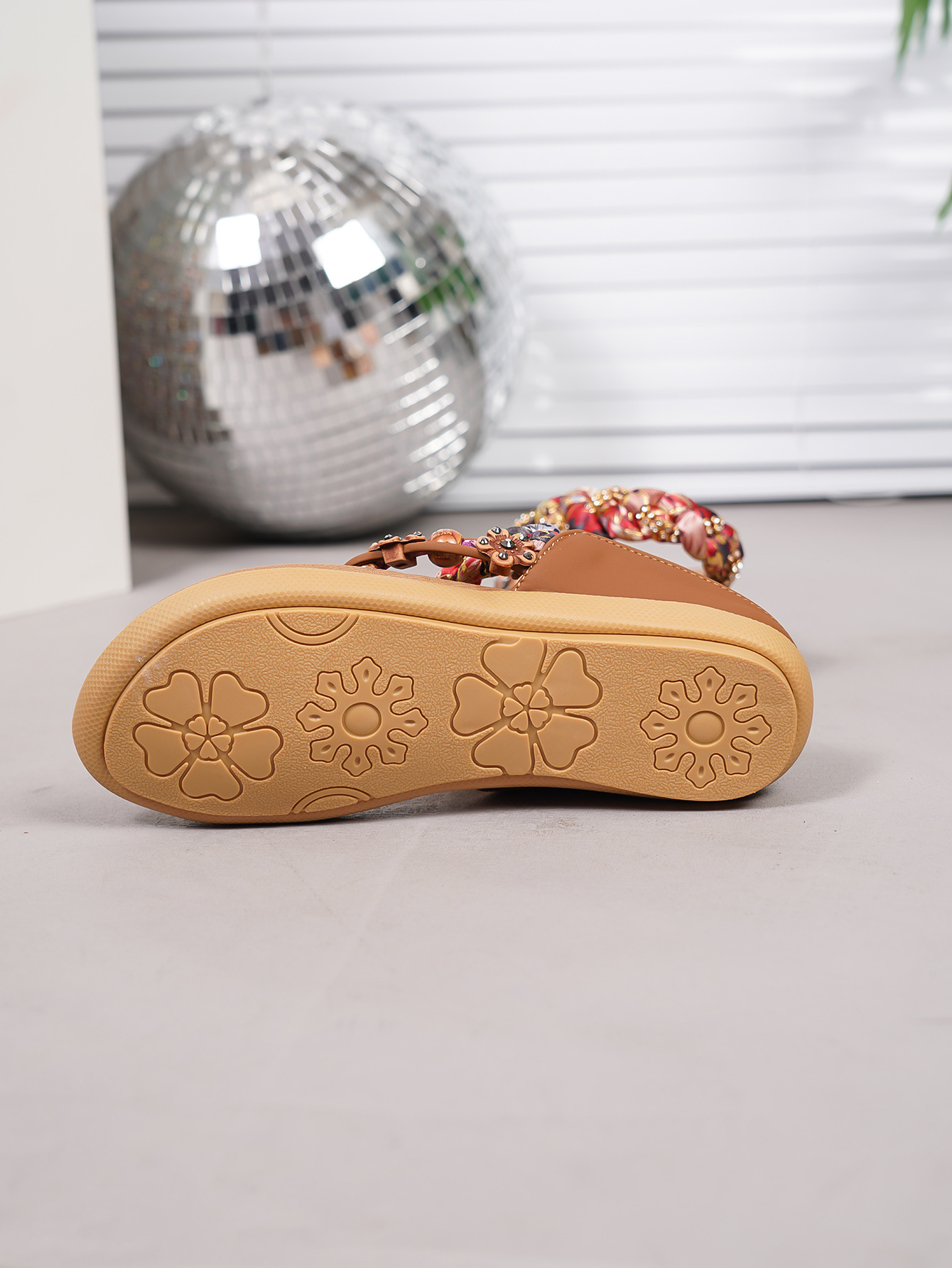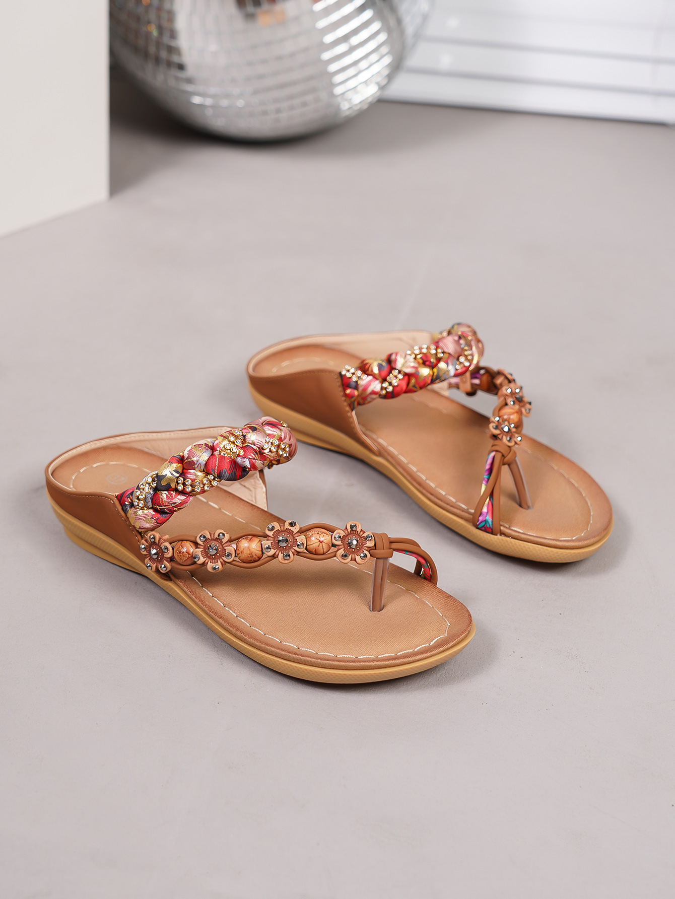 波西米亚风格新款2025花朵休闲时尚平底凉鞋女海边沙滩复古
