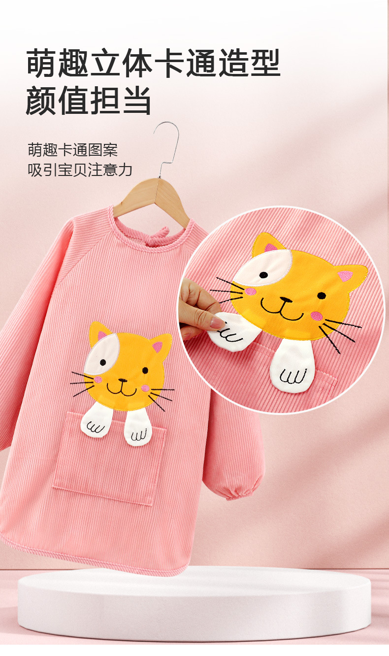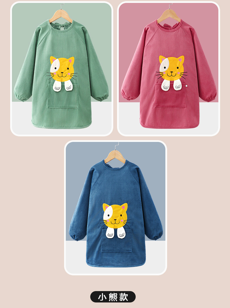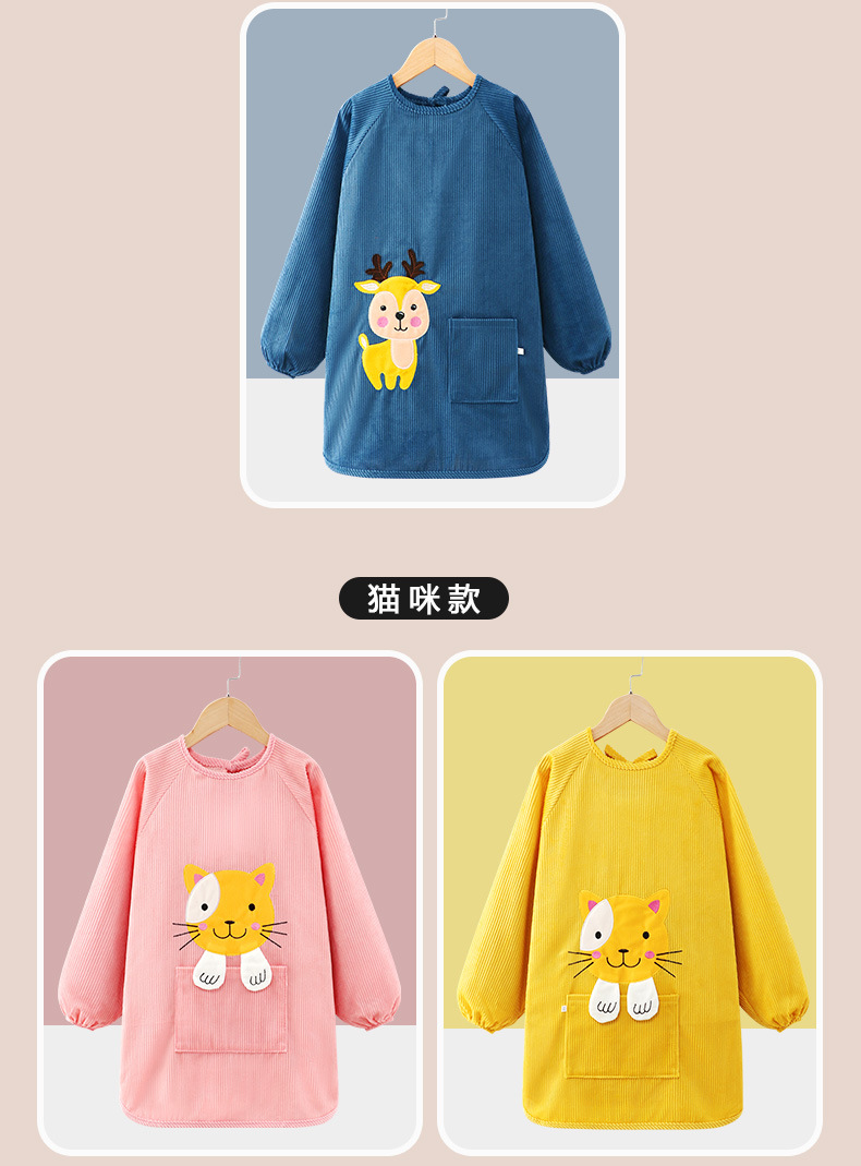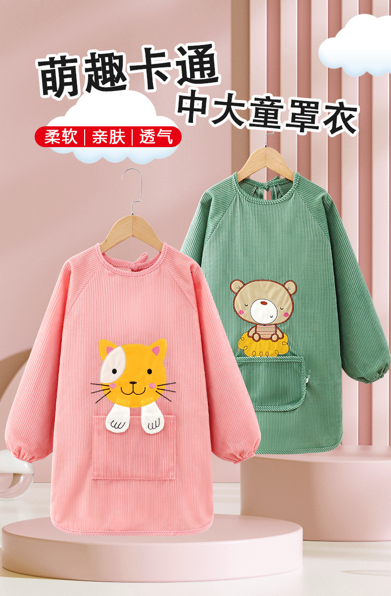 秋冬加长中大童罩衣防水防脏围裙小孩吃饭小学生幼儿园反穿设计