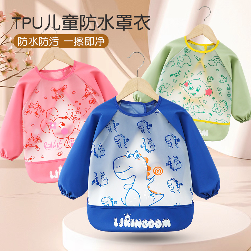子供用エプロン絵カバー汚れ防止赤ちゃん赤ちゃん幼稚園絵画長袖食事防水よだれかけ服