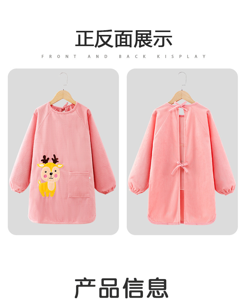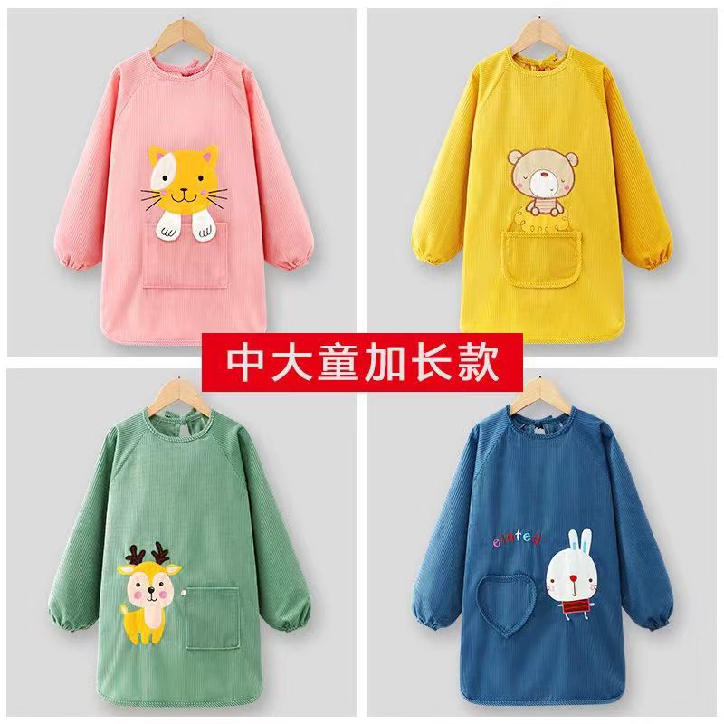 中大童长款罩衣儿童反穿衣长袖防水幼儿园男女宝宝吃饭围裙倒褂