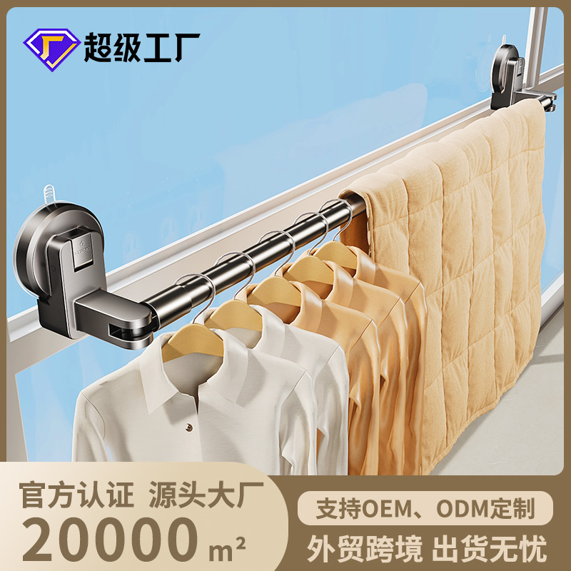 穴なし吸盤ハンガーベランダ家庭用物干し棒室内室外干し神器伸縮式物干し棒