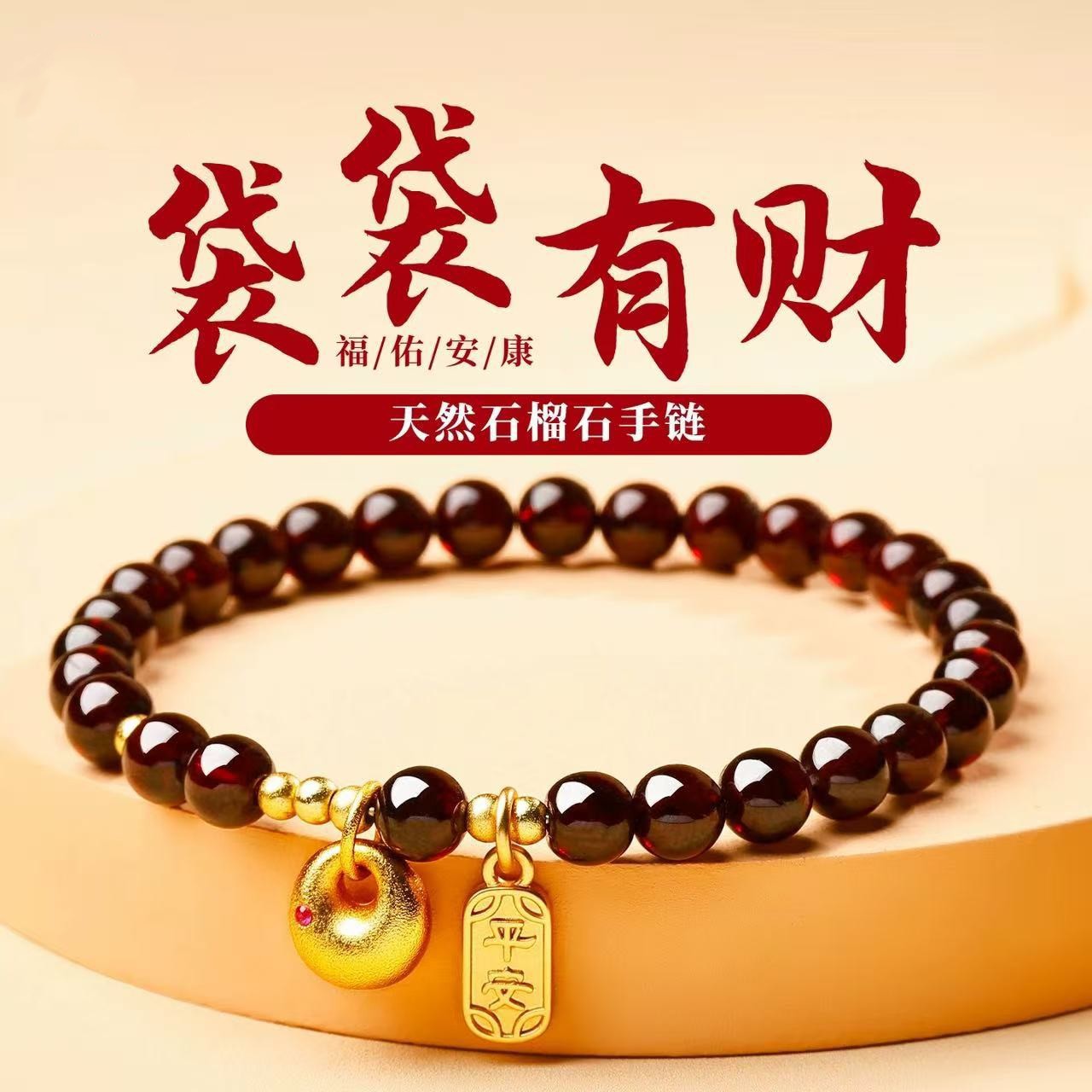 天然石榴石手链福包男女福牌新中式手串平安纳福手链送闺蜜礼物