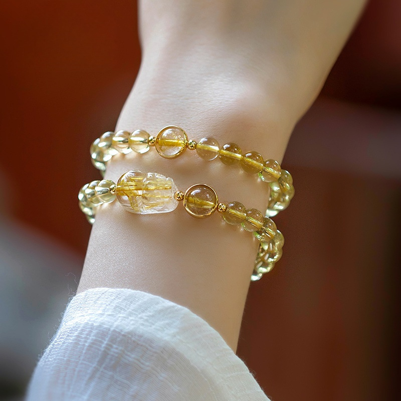 天然の黄水晶のブレスレットの女性のピシュピストのチタンの結晶の金髪の結晶の手の串の夏の幸運の財源は彼女に贈り物を送ります。