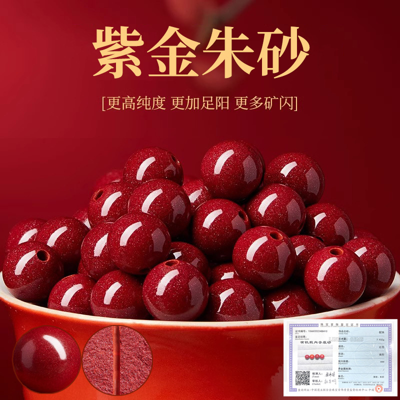 Beibeifu クリスタル天然赤砂干支ルースビーズ紫金砂三合干支辰砂ブレスレットビーズ付き