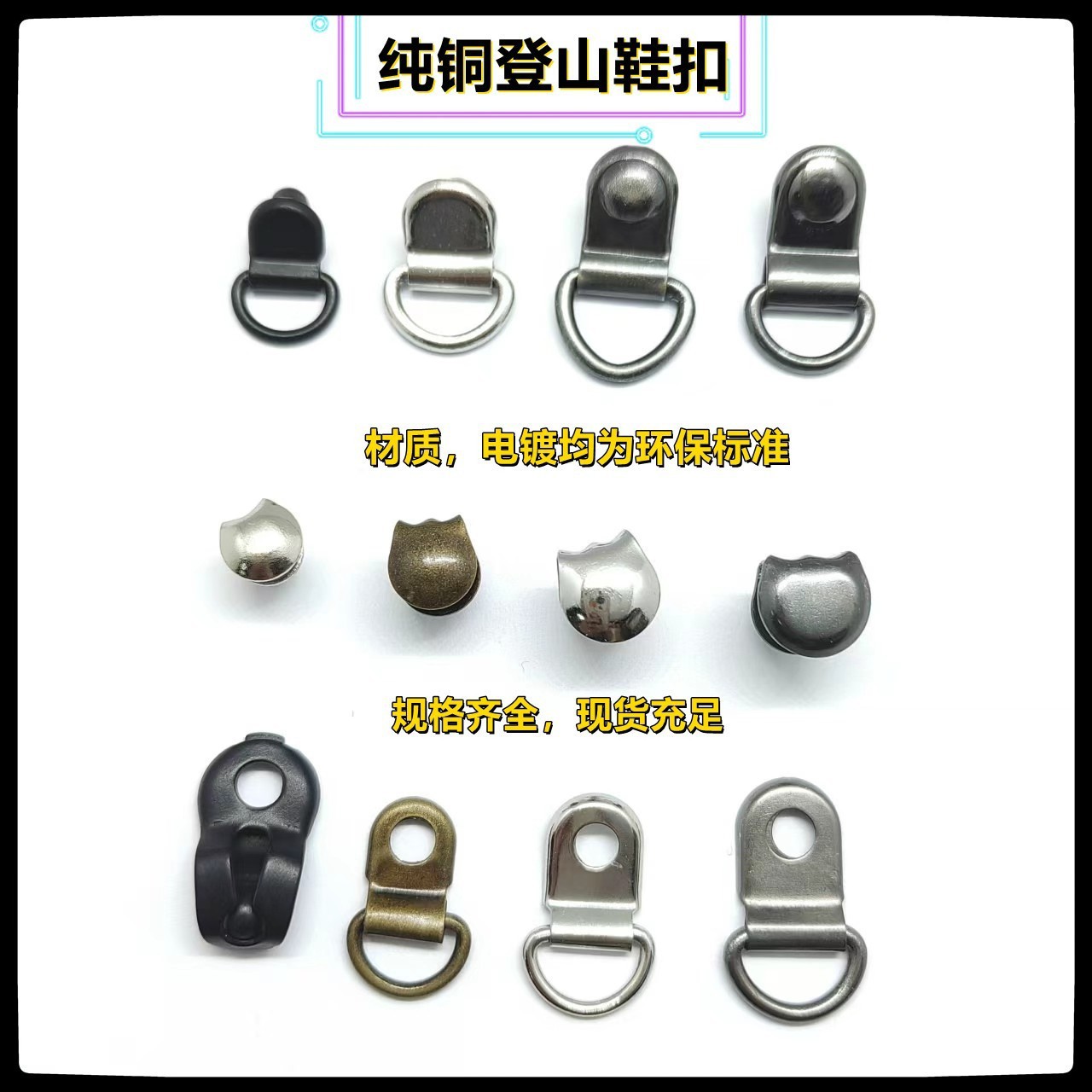 厂家现货户外纯铜金属登山鞋扣穿绳扣锌合金登山鞋扣绕带扣铆钉