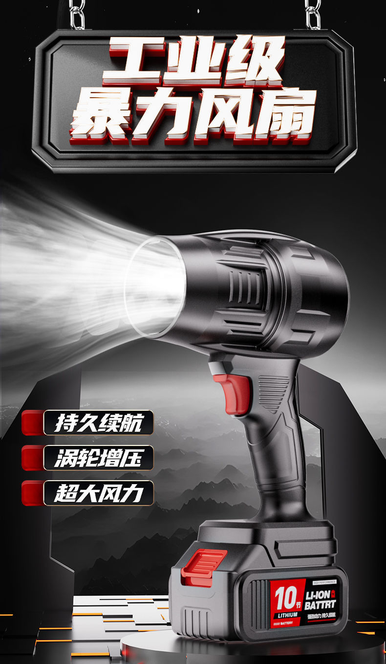 跨境厂家强力风扇吹尘机吹雪锂电暴风机涡轮吹风机大功率鼓风机