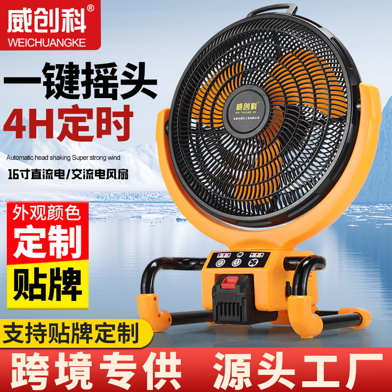 充電式リチウム電池ファン、屋外ポータブルキャンプファン、3段階速度調整、首振り機能付き