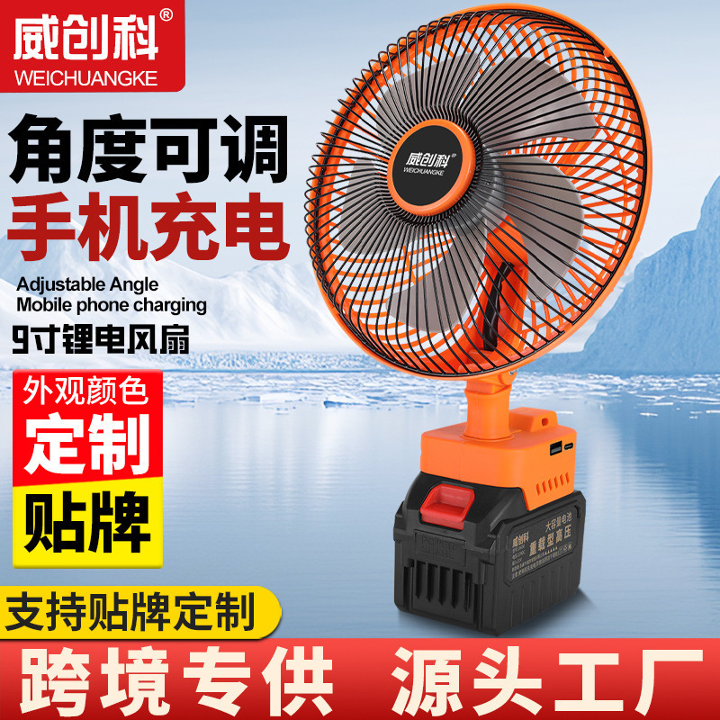 9inch ワイヤレスリチウム電池充電式小型ファン、強風、長寿命、屋外釣り、露店、キャンプに最適