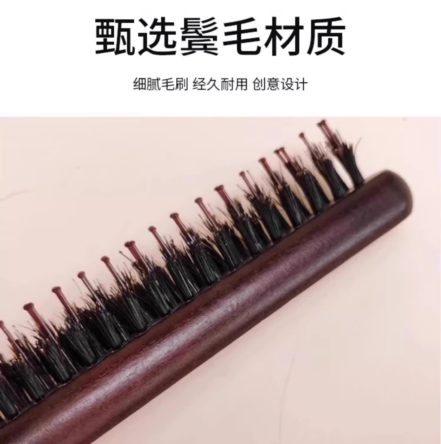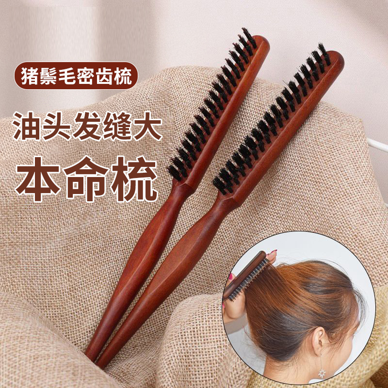 猪鬃毛窄齿梳子蓬松头发高颅顶三排齿打毛美发头包脸发缝盘发用