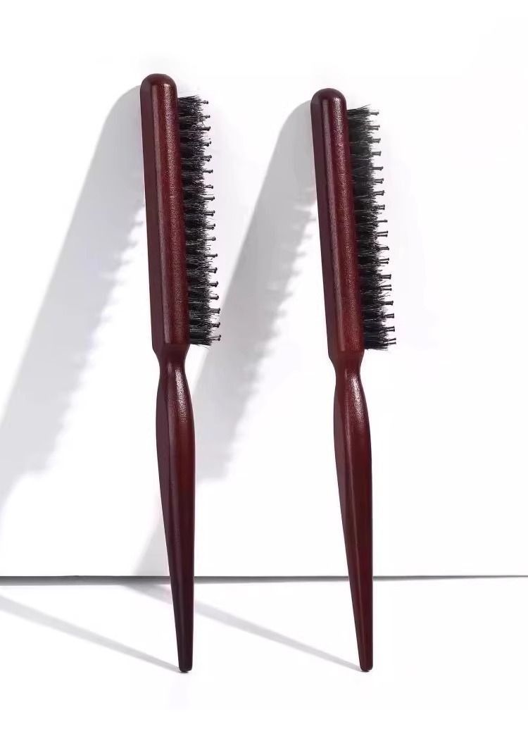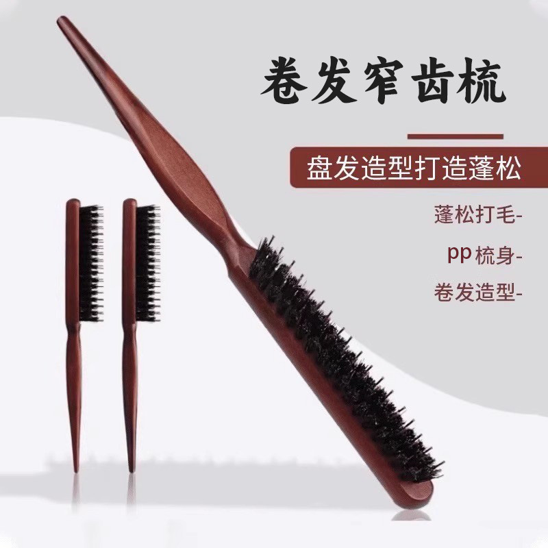 猪鬃毛窄齿梳家用蓬松卷发盘发造型三排梳理发店整理美发打毛梳