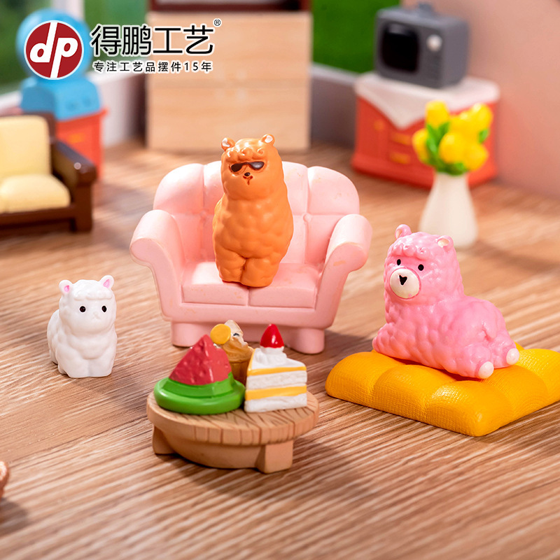 微景观创意可爱羊驼公仔摆件 diy装饰品盲袋配件汽车载桌面小摆件
