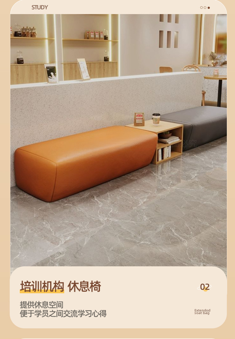 简约培训机构长条凳家长等候休息区接待沙发医院美发店无靠背卡座