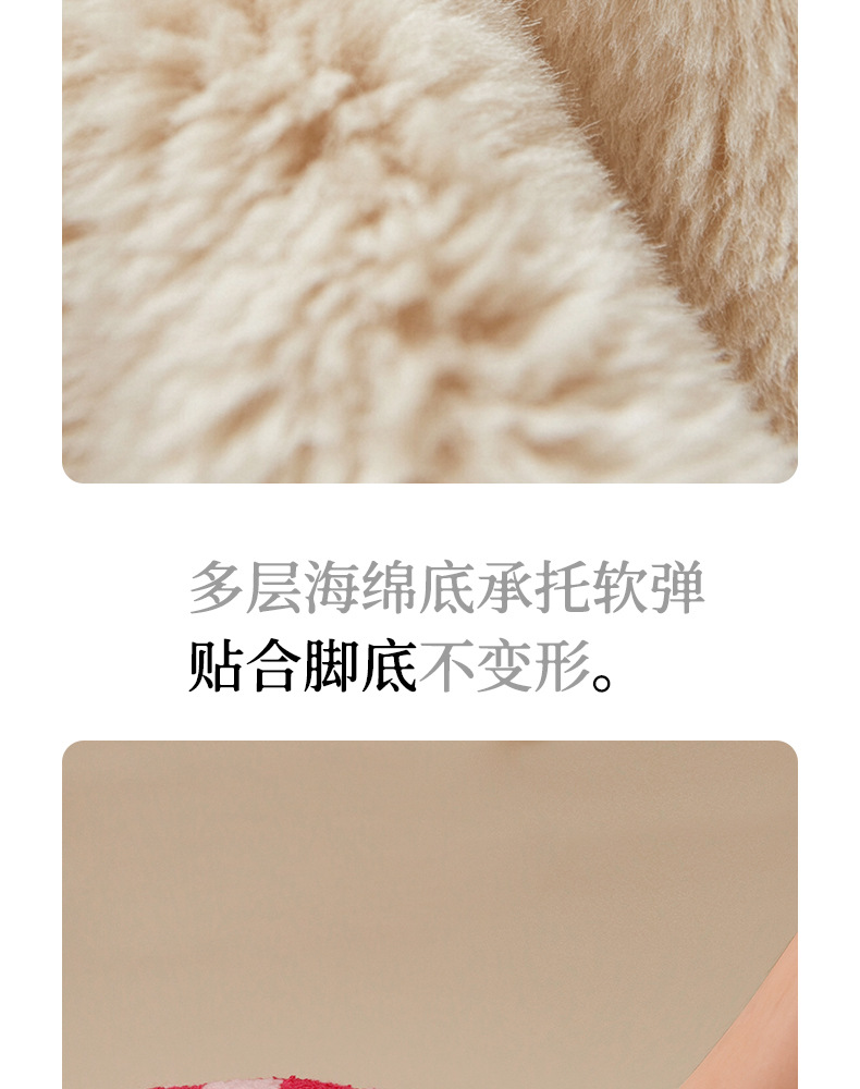 2025跨境新款六边形皮标毛毛拖鞋居家用厚底保暖防滑棉拖加厚加绒