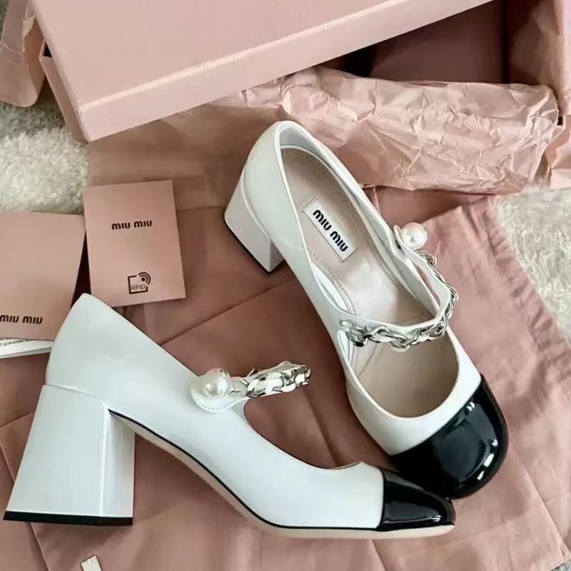 miu ホワイトシューズ女性用 2025 新しい厚底スニーカースポーツとレジャー本革クラシック多用途女性の靴
