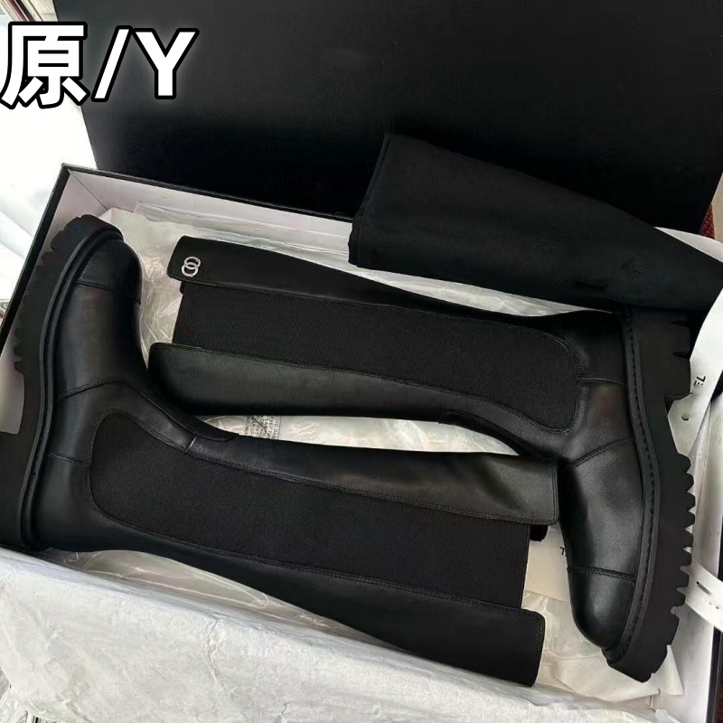 高版本 2025小香真皮圆头拼色厚底增高套筒弹力显瘦高筒马丁靴女