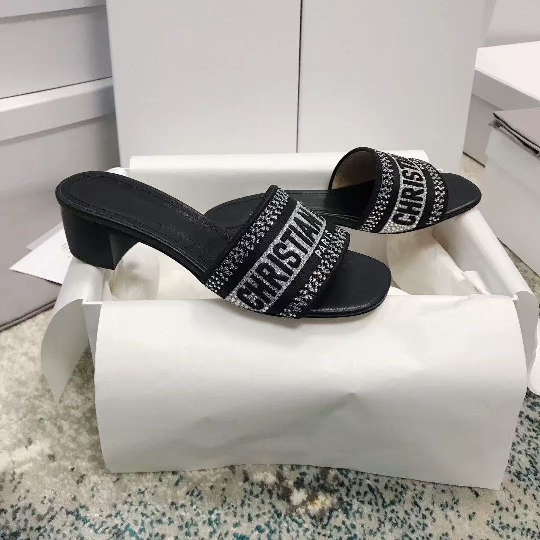 GD バージョンの女性用ラインストーン刺繍スリッパ、2025 年夏の新しいスタイルの本革プリント厚底フラットカジュアルサンダル