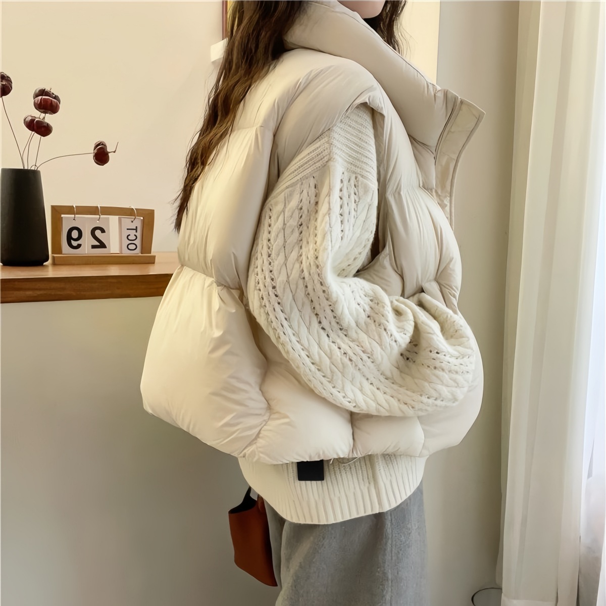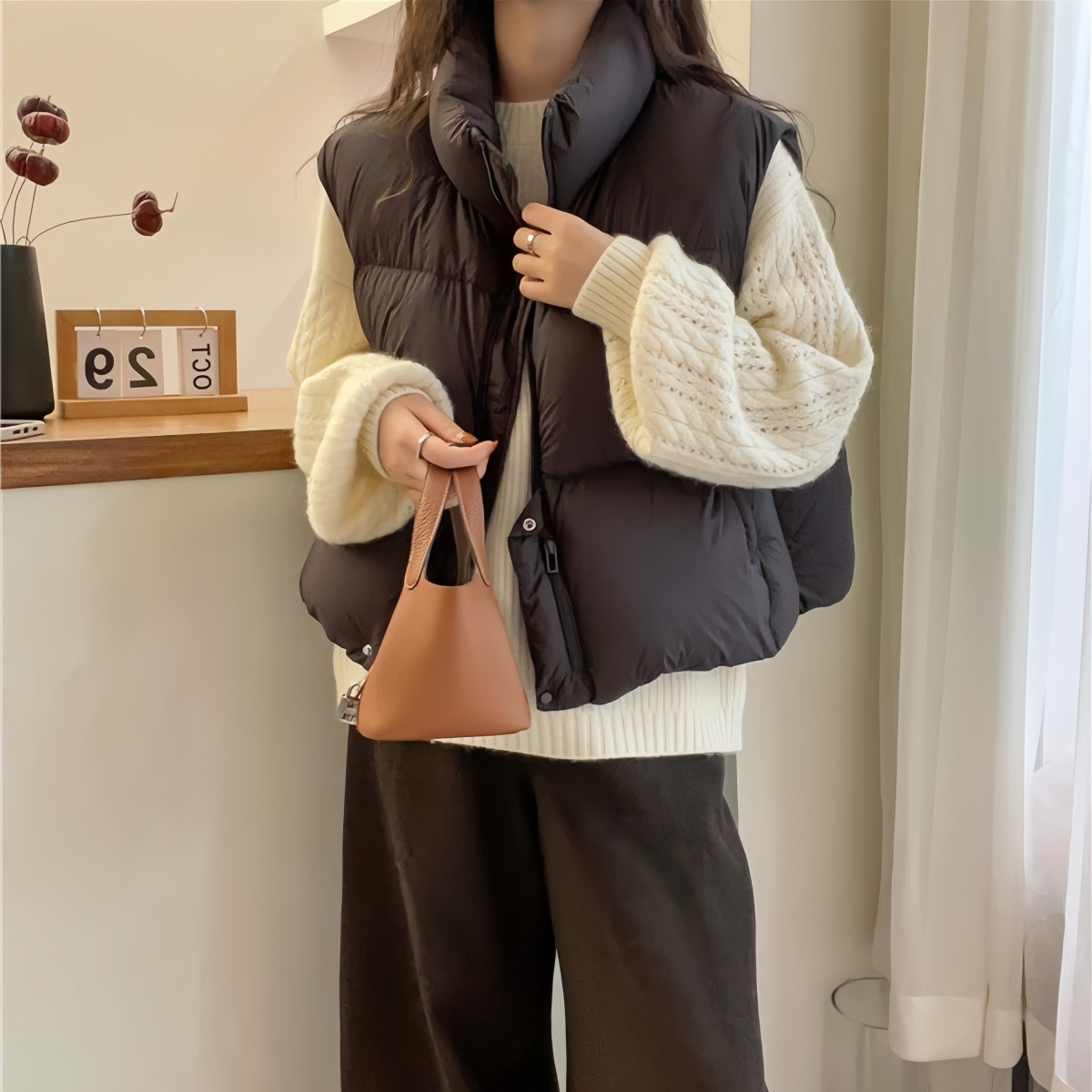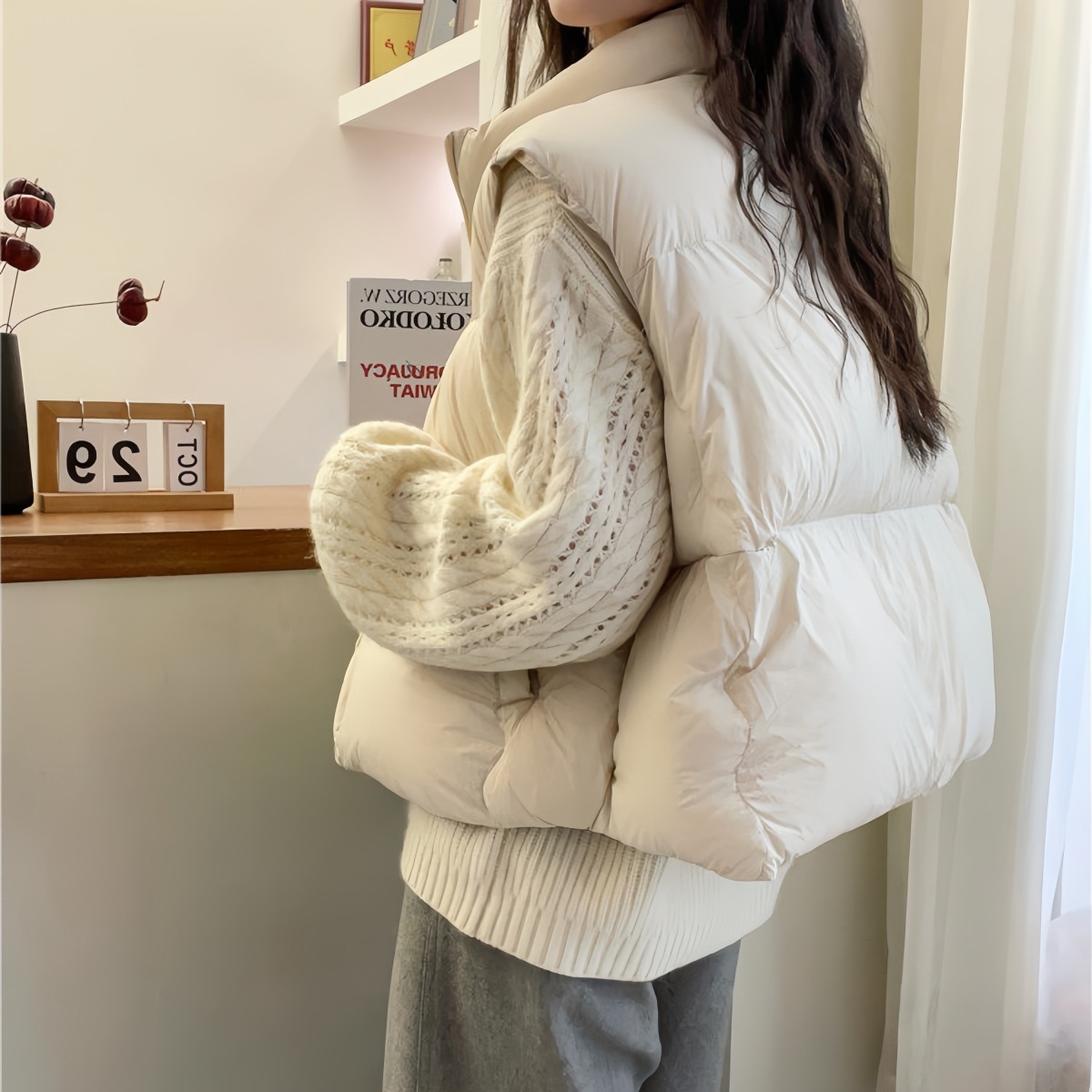 綿服新作2024年防寒ジャケットベスト半袖アウターベストスリムショート丈通勤風ショートスリム