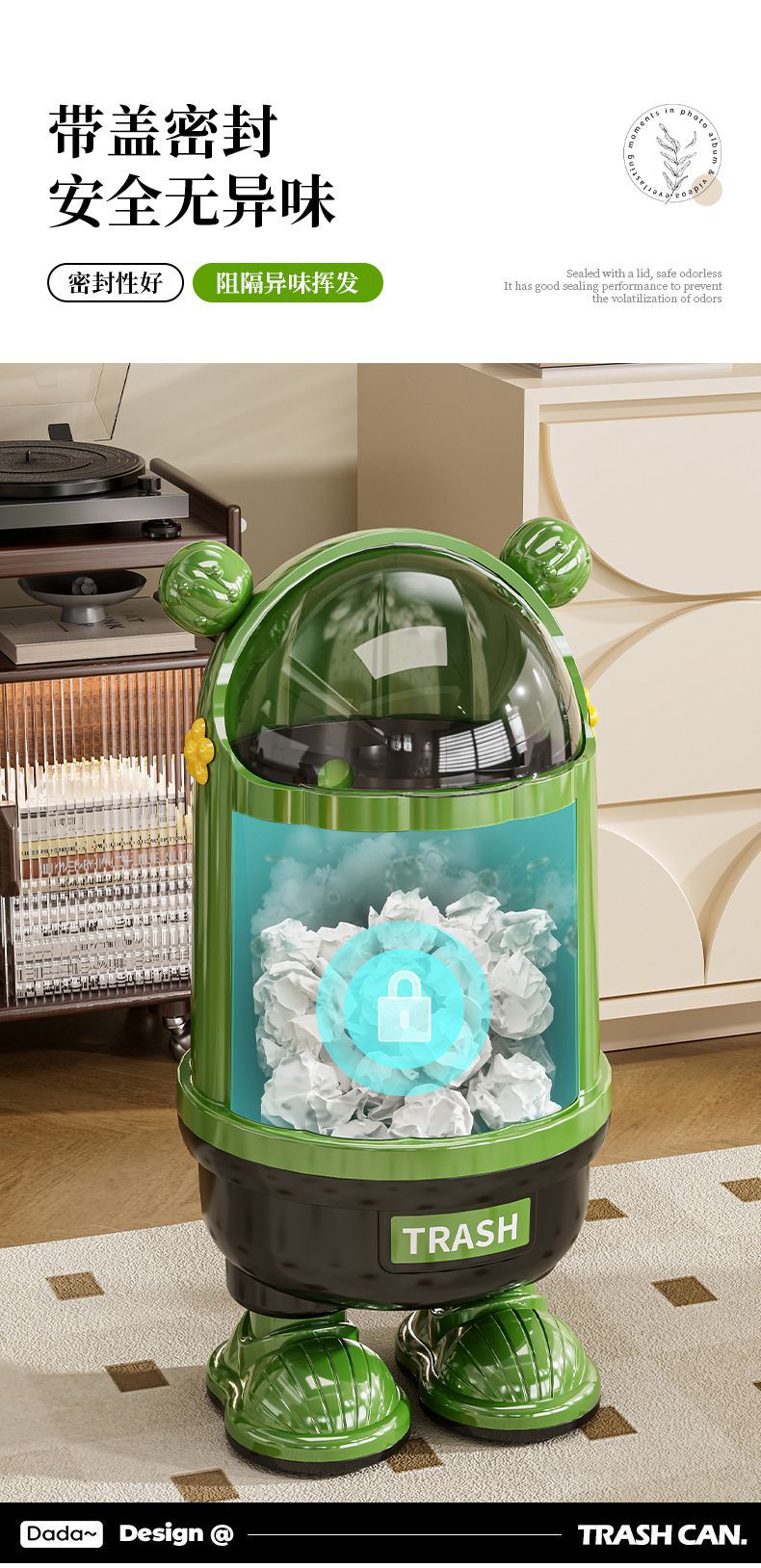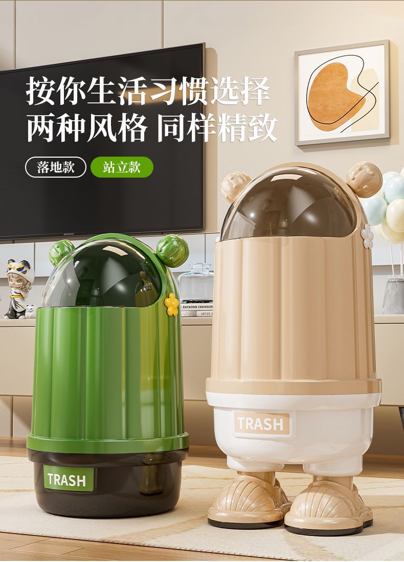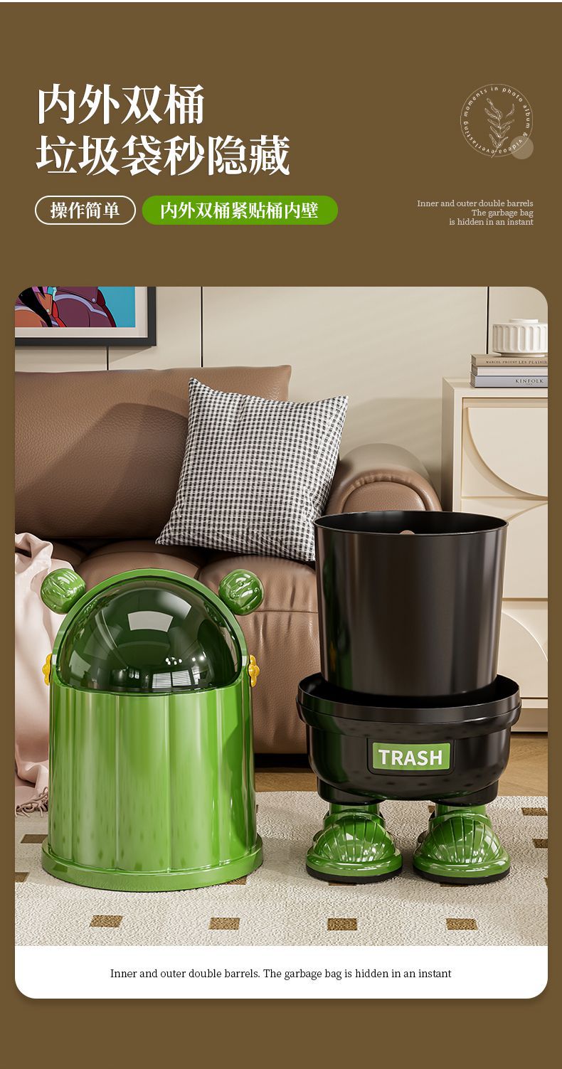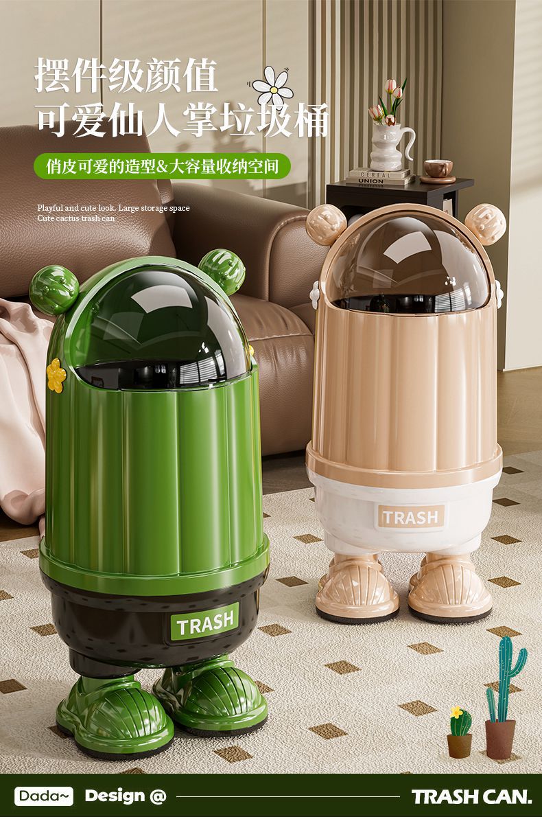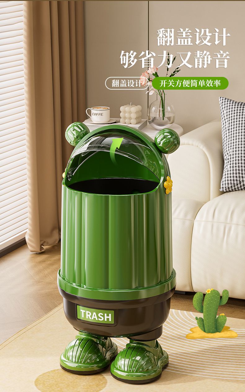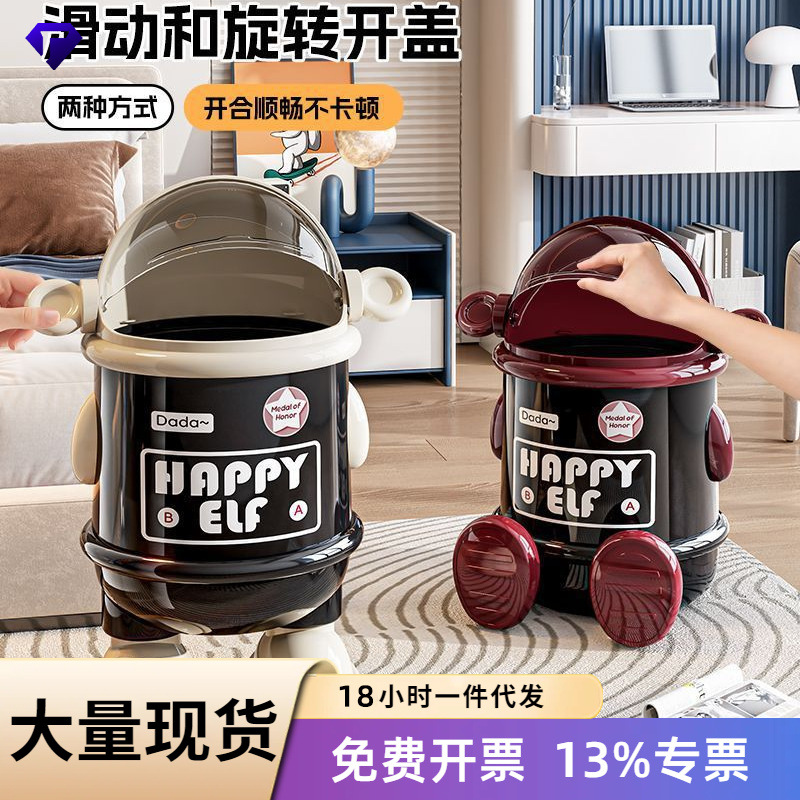 クリエイティブ漫画家庭用フリップトップゴミ箱高価値キッチンリビングルームインターネット有名人大容量防塵ゴミ箱蓋付き