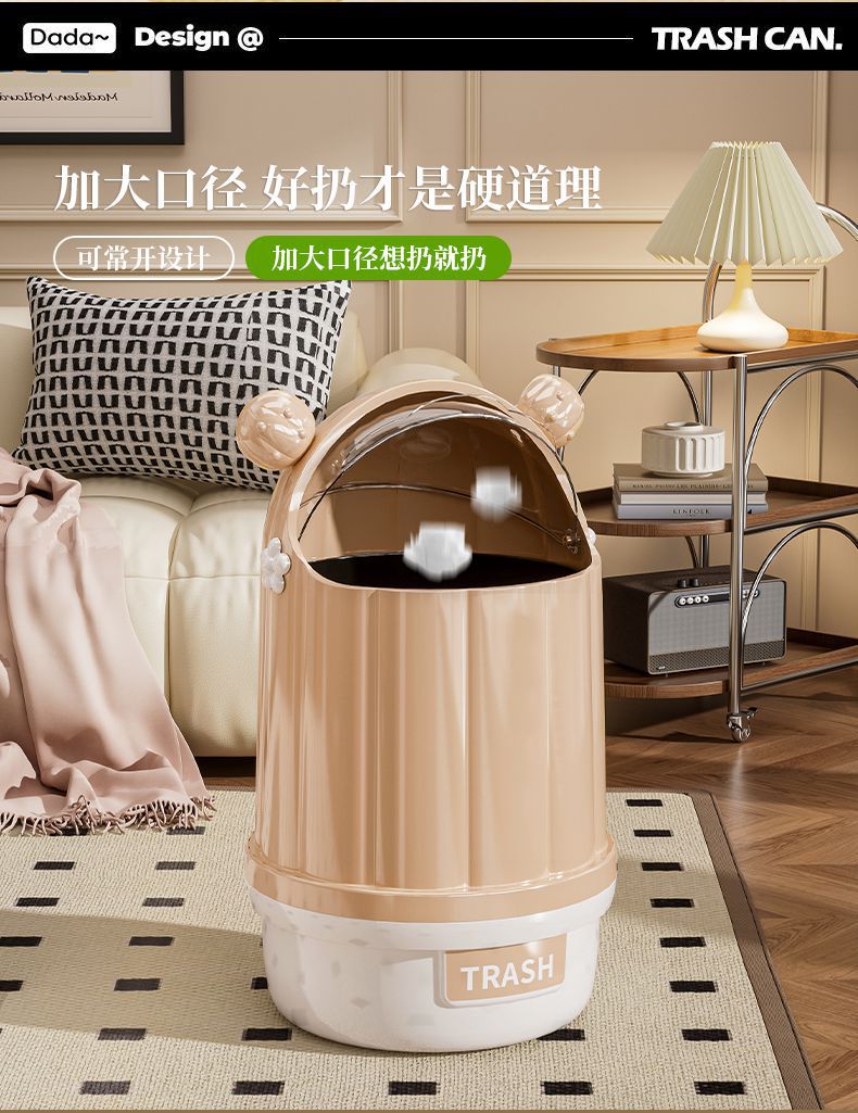垃圾桶高级感轻奢家用大号大容量多功能创意客厅可移动垃圾筒带盖