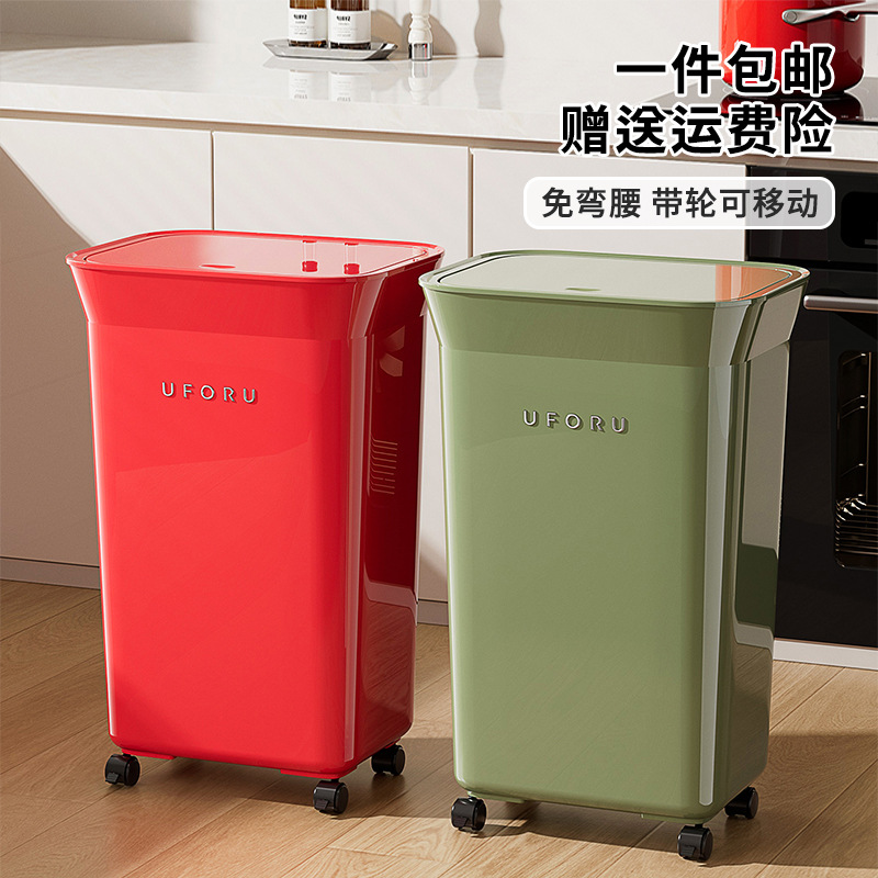 高脚垃圾桶家用高级感带盖轻奢带轮免弯腰厨房客厅按压开盖垃圾筒