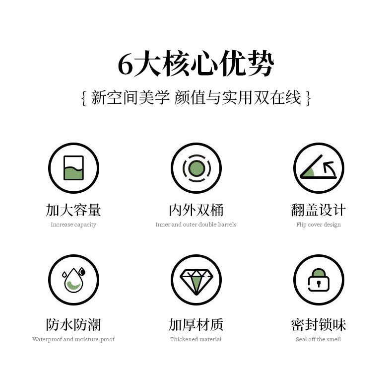 家庭用ゴミ箱、高級感、プッシュペダル、ダブルオープンデザイン、内外ダブルバレル、静音開閉、多機能ゴミ箱