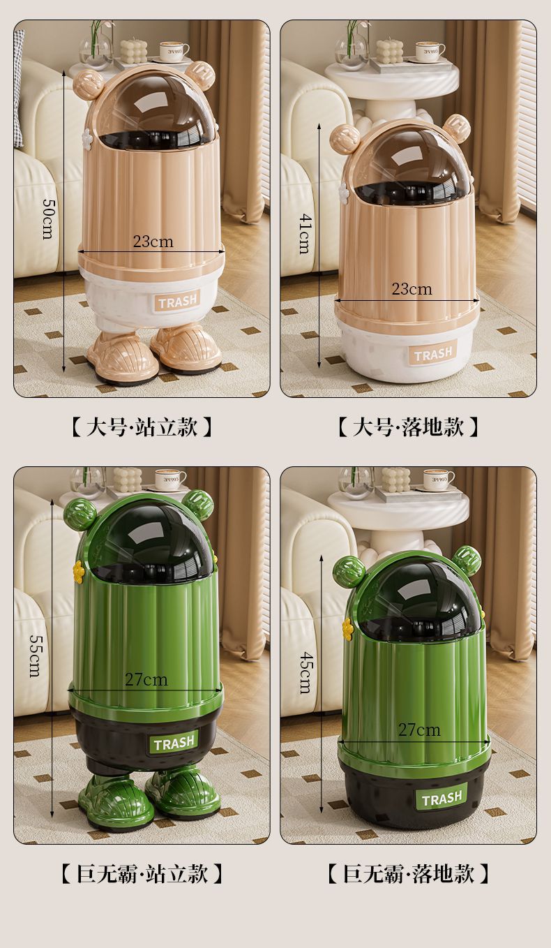 家庭用ゴミ箱、見栄えの良い、大型、大容量、腰をかがめない、リビングルーム、オフィス、足付きの厚みのある漫画ゴミ箱