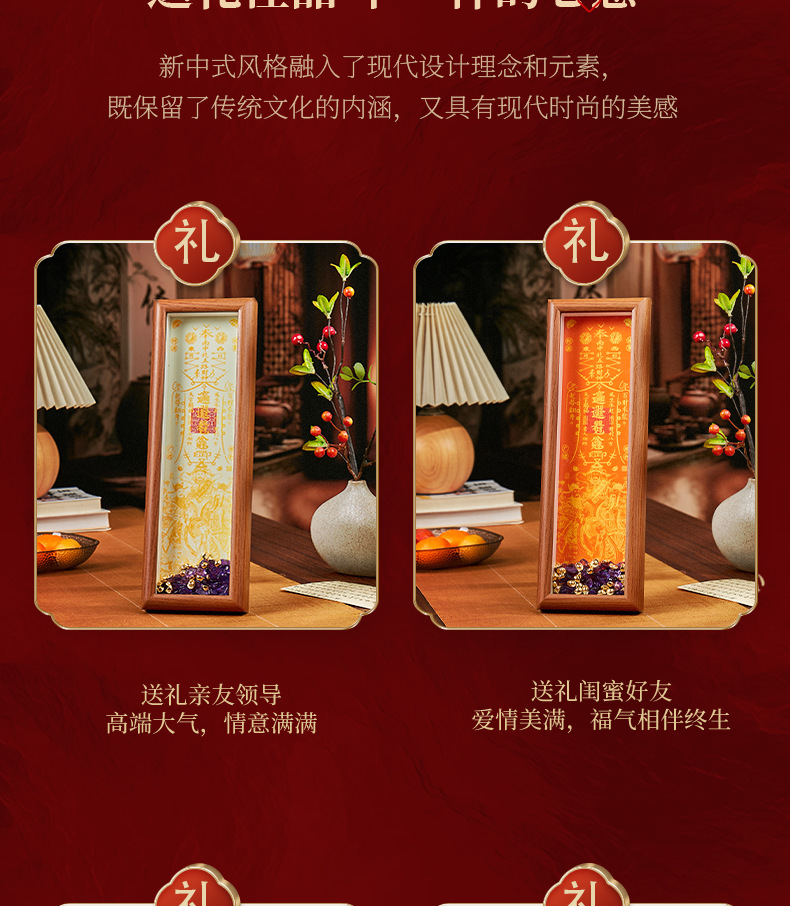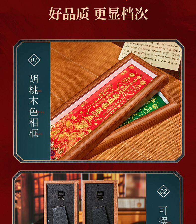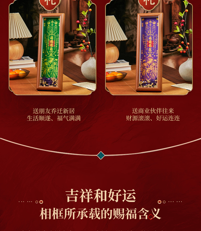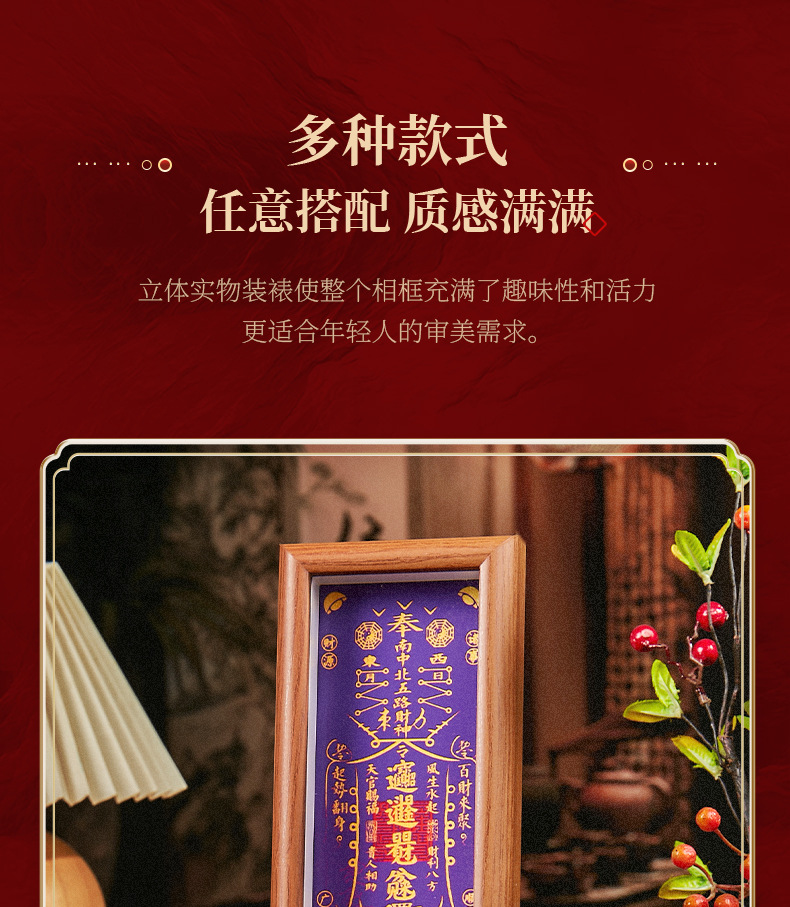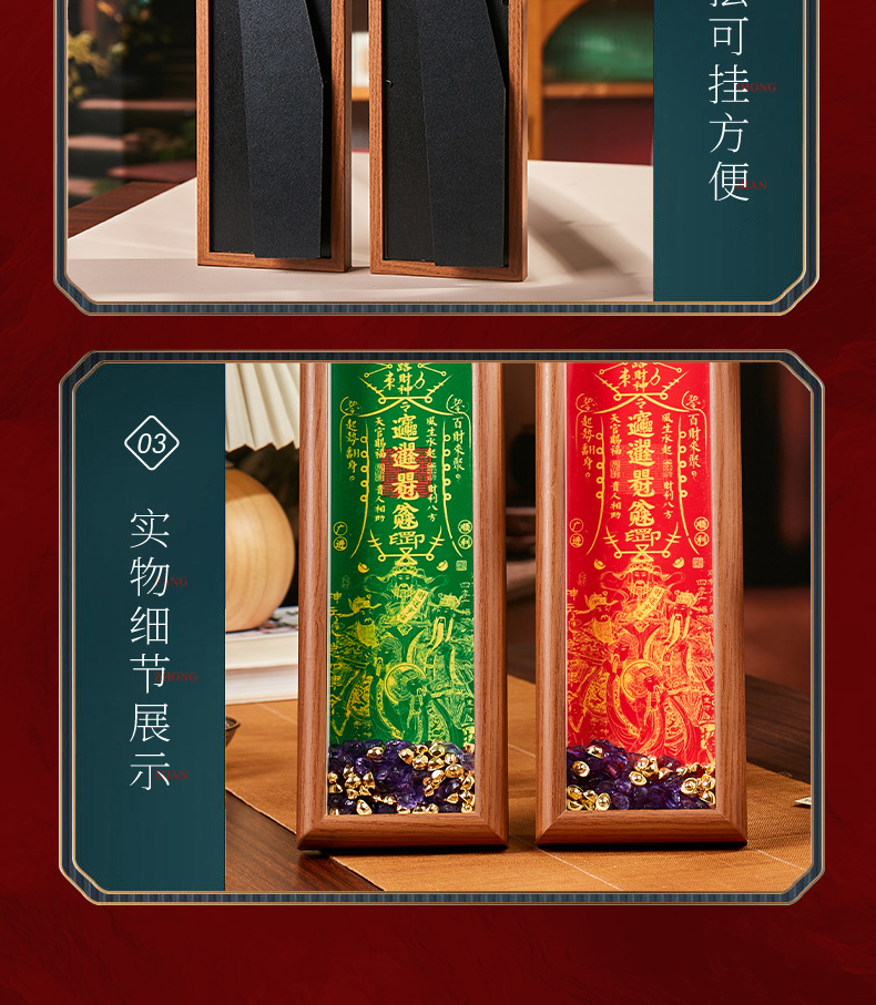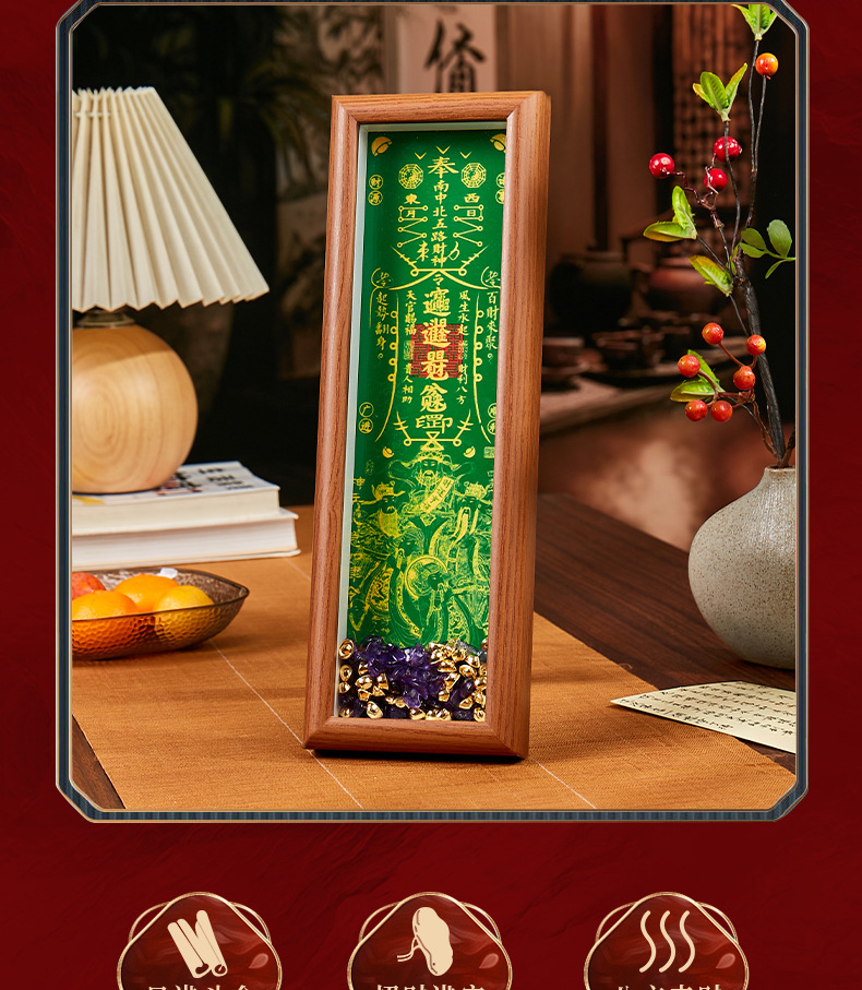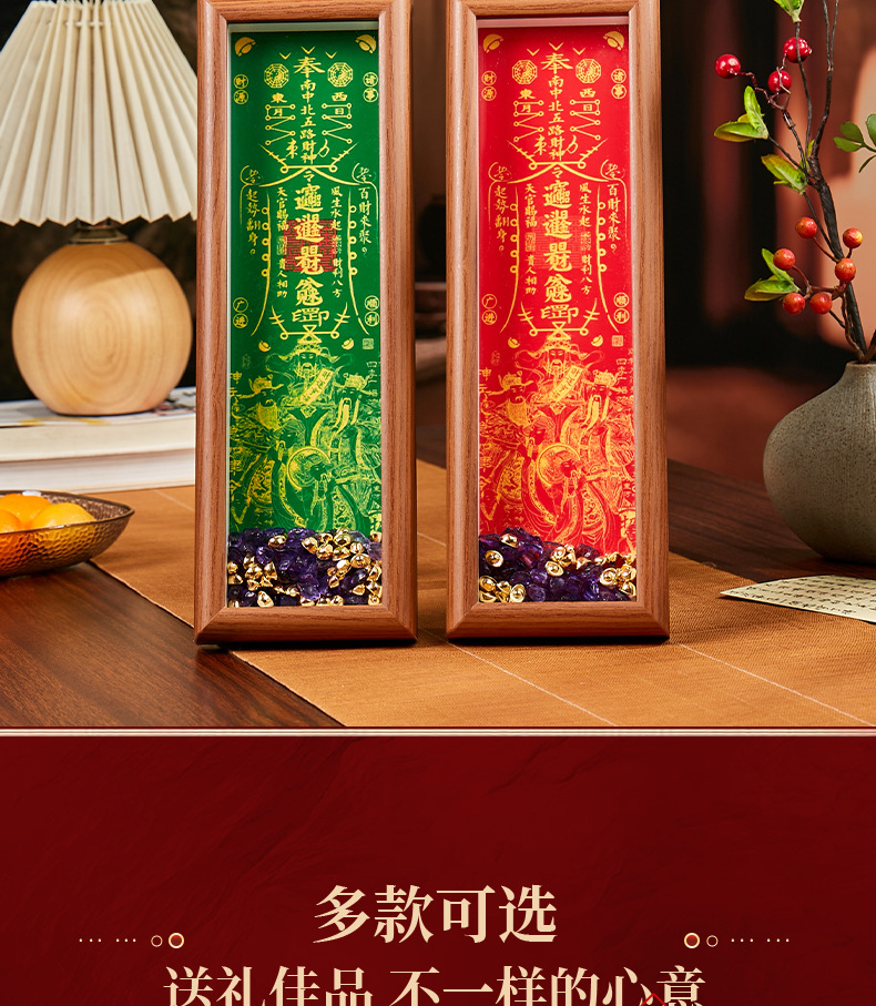 顺风顺水天官赐福手串木质相框摆件礼物客厅办公室桌面摆件摆台
