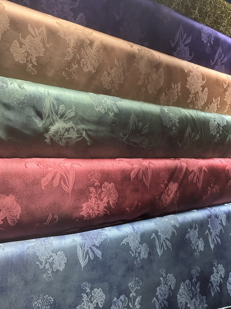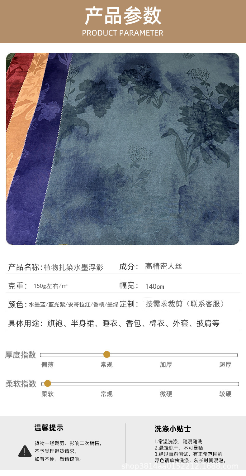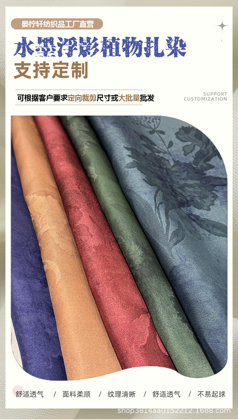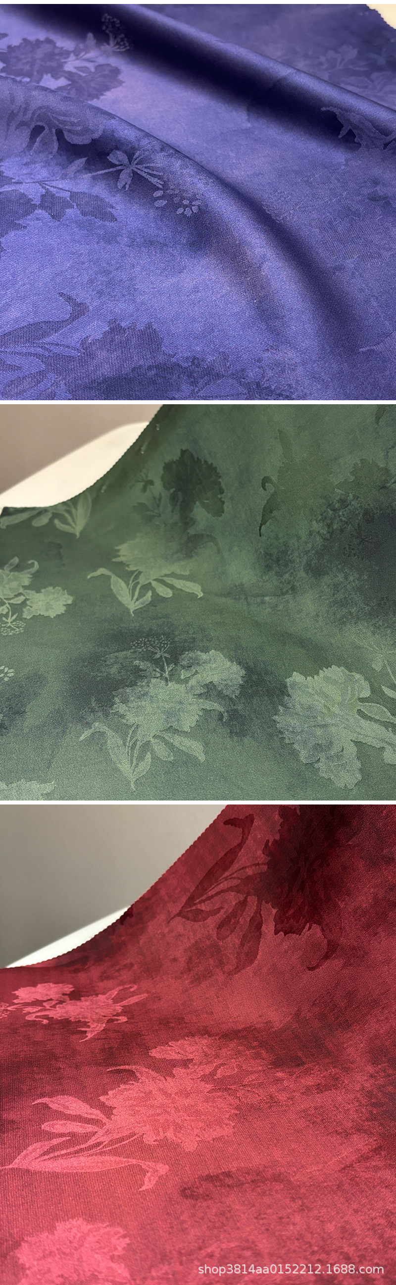 植物扎染康乃馨暗纹提花仿丝绸面料人丝高密新中式旗袍外套布料秋