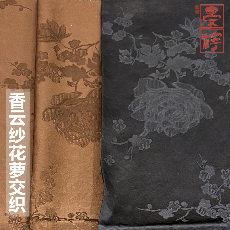 交織花羅香雲糸生地はポテトチップス新中国風服装生地黒サテンジャカード布春夏