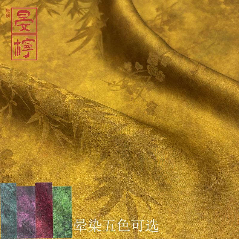 【金色流年】過泥非遺香雲紗生地绢糸高級チャイナドレス生地高経布