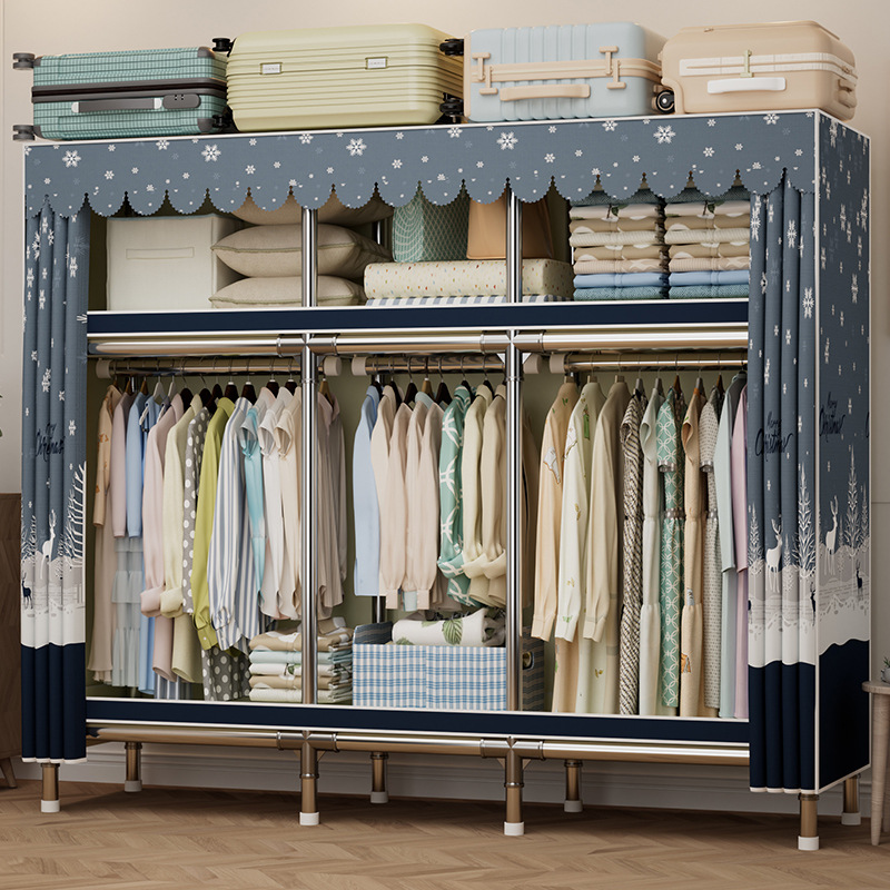 布衣柜全钢架加固加厚家用卧室出租房用简易衣柜结实耐用组装K21