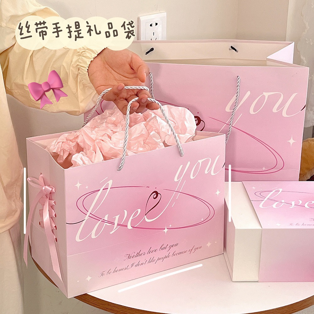 ins粉色520礼品袋浪漫情人节高颜值礼物袋大号生日手提纸袋新款