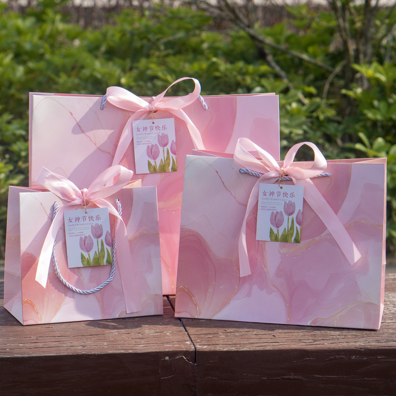 3月8日の卒業シーズンギフトバッグ、ハンドバッグ、高級ギフトバッグ、包装袋、既製のピンクの紙袋、教師用ギフトバッグ