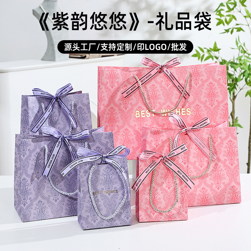 紫色礼品袋复古纹路伴手礼袋子生日礼物袋手提袋纸袋高级感礼袋