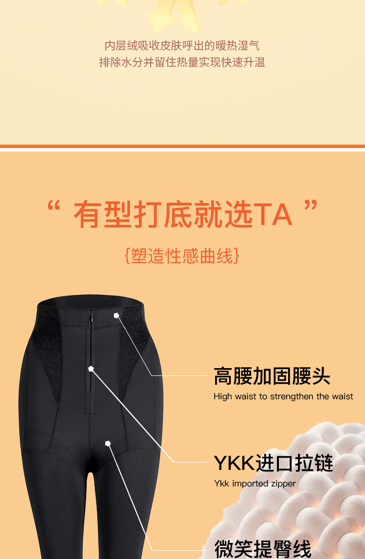 秋冬直播爆款进口拉链一体修身保暖塑形九分裤女纤腰美背细腿收腹