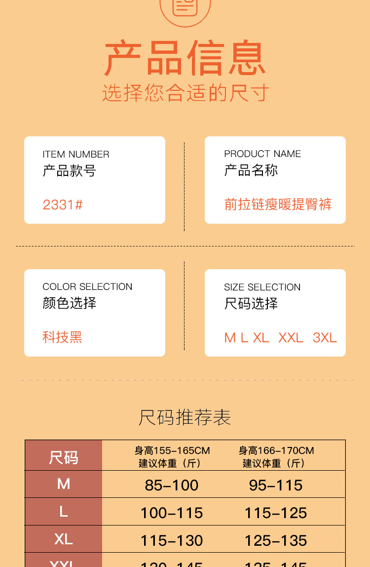 尺码 M(85-100斤),L(100-115斤),XL(115-130斤),2XL(140-145斤),3XL(145-160斤),4XL(160-175斤)