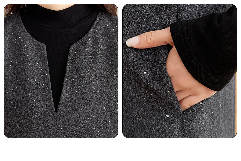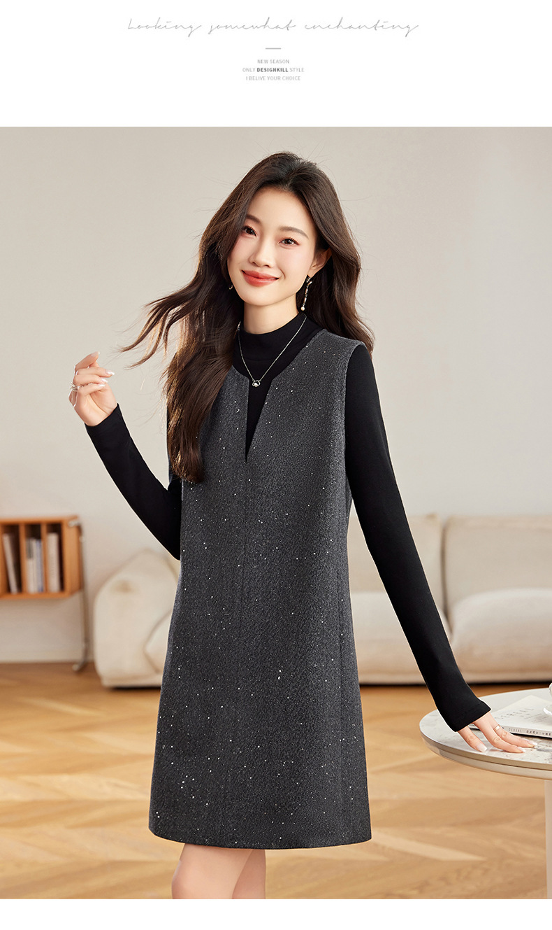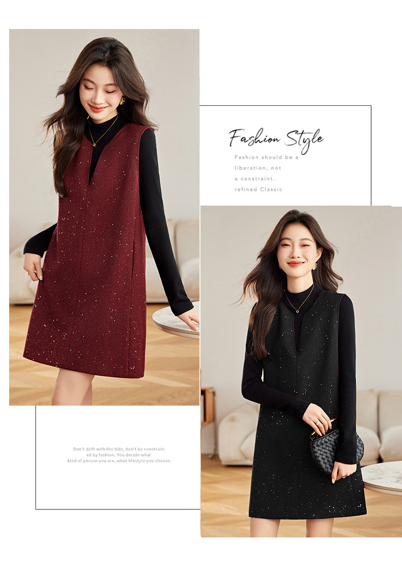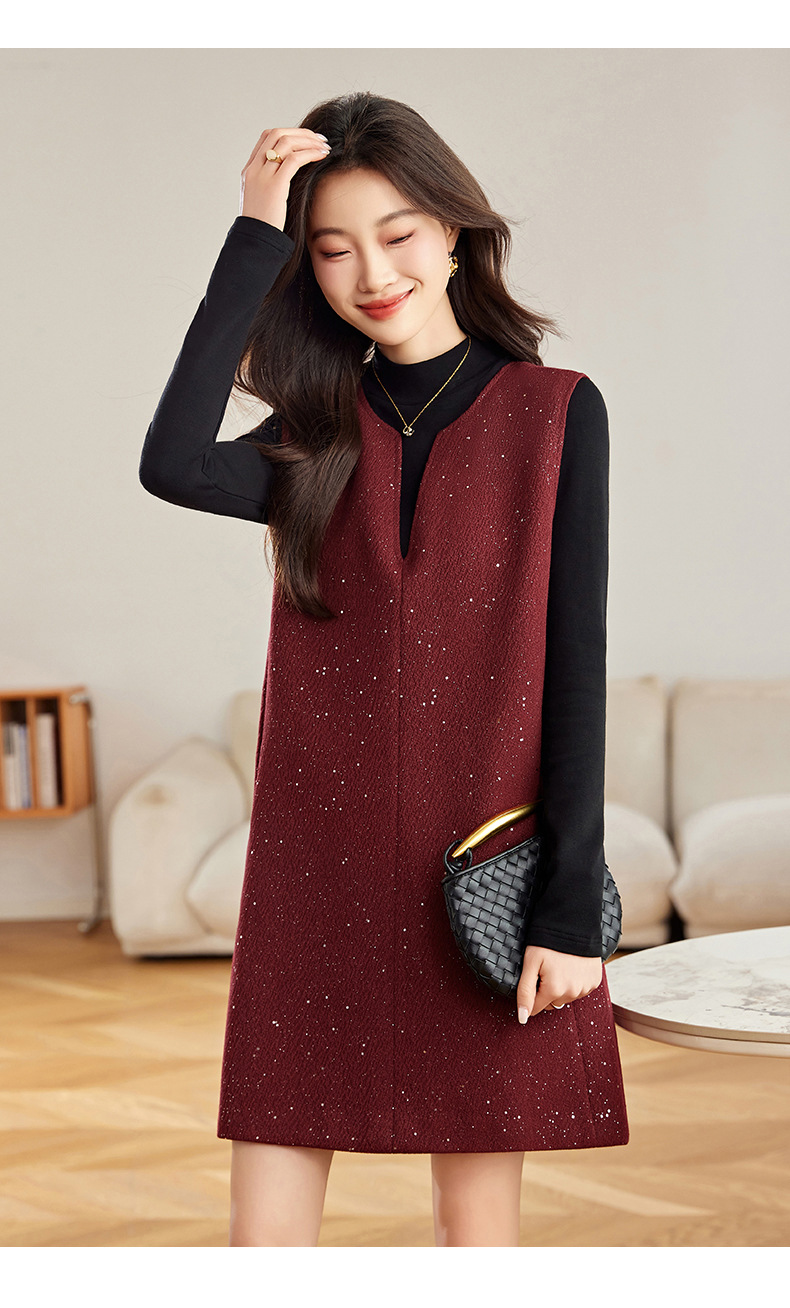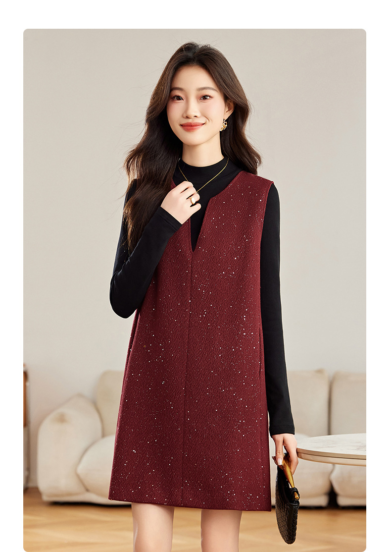 法式小香风毛呢黑色亮片背心裙女秋冬季新款V领高级感外搭马甲裙
